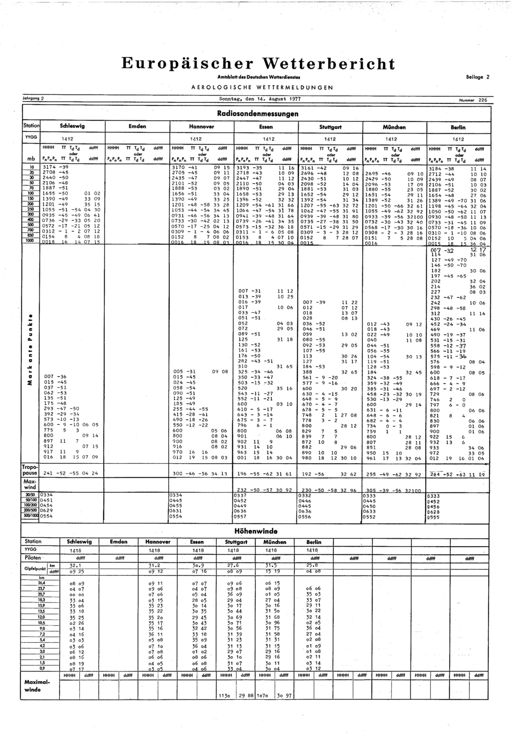 Europäischer Wetterbericht. Beilage 1, Bodenwettermeldungen. 1976-1994