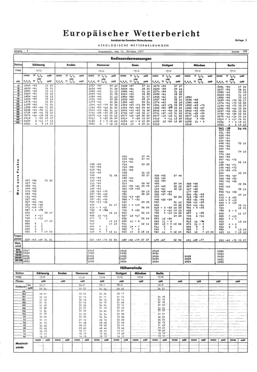 Europäischer Wetterbericht. Beilage 1, Bodenwettermeldungen. 1976-1994