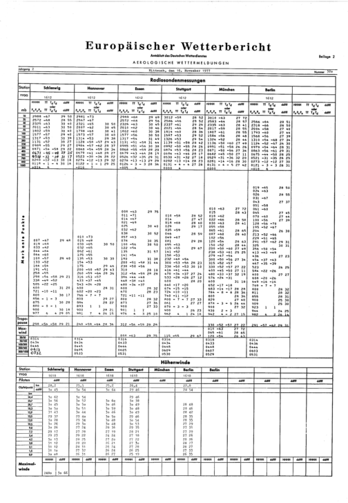 Europäischer Wetterbericht. Beilage 1, Bodenwettermeldungen. 1976-1994