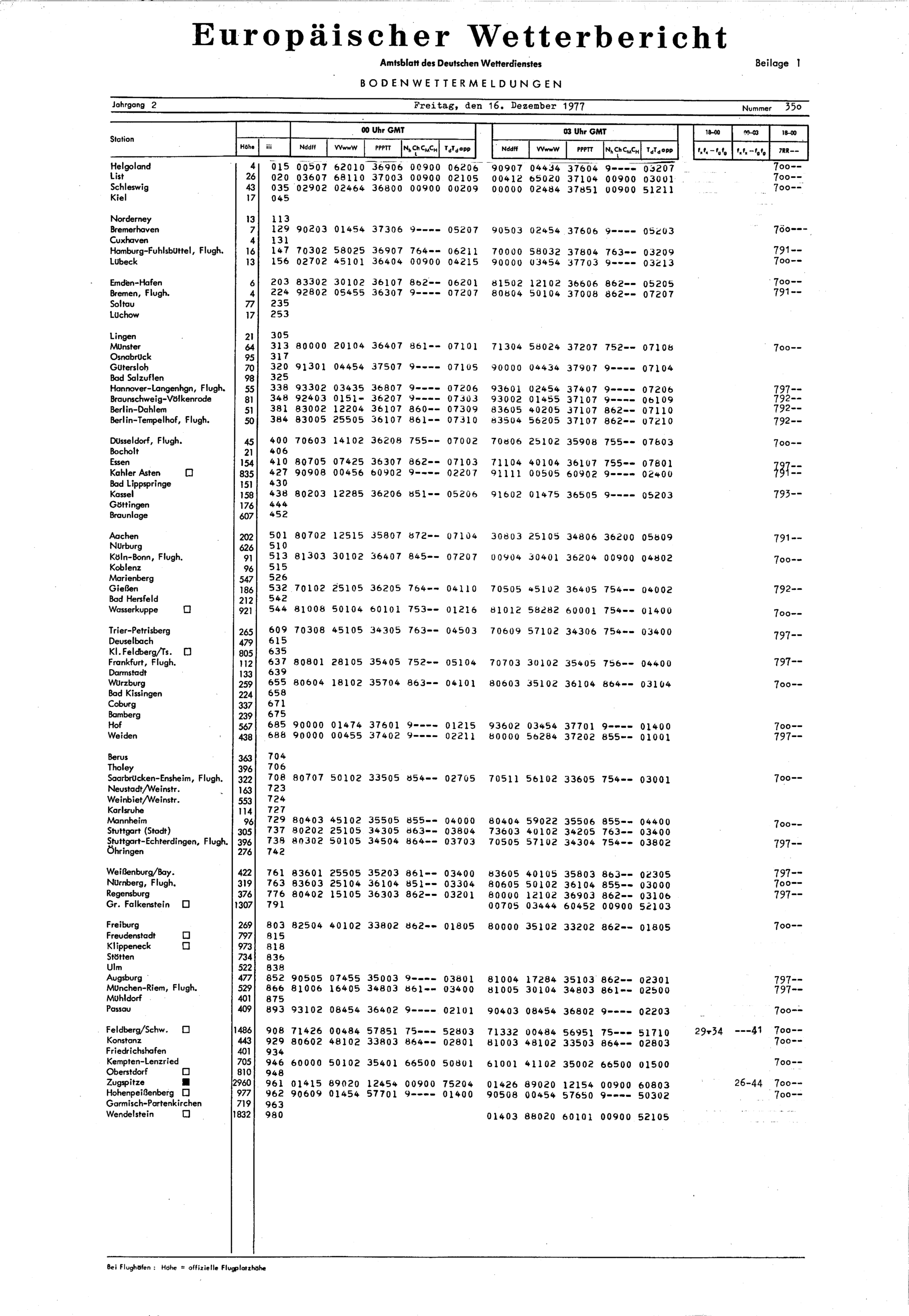 Europäischer Wetterbericht. Beilage 1, Bodenwettermeldungen. 1976-1994