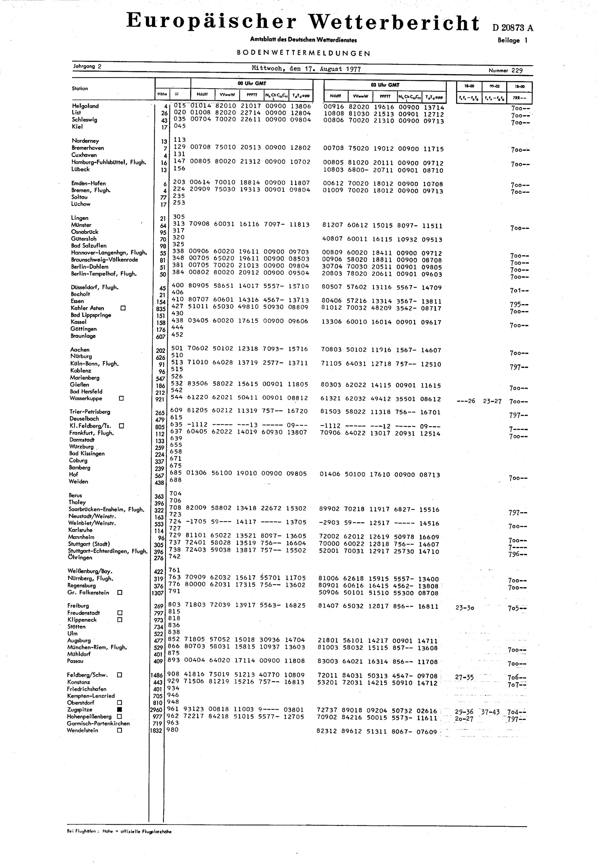 Europäischer Wetterbericht. Beilage 1, Bodenwettermeldungen. 1976-1994