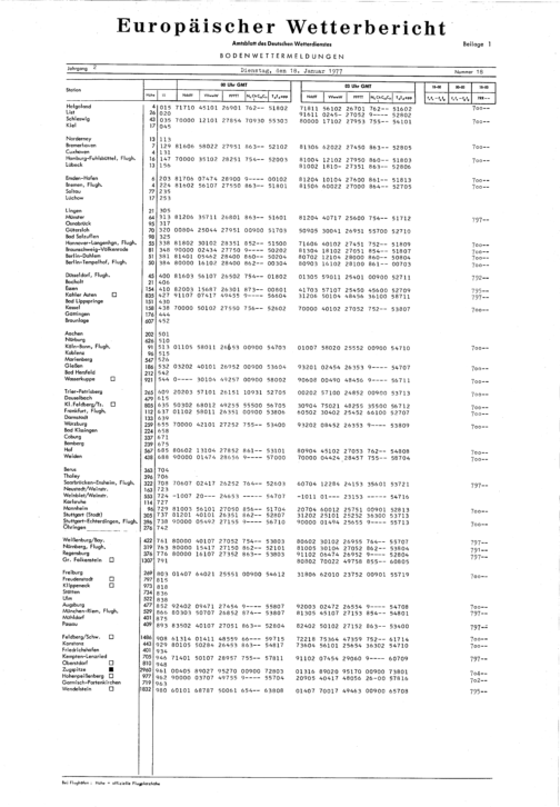 Europäischer Wetterbericht. Beilage 1, Bodenwettermeldungen. 1976-1994