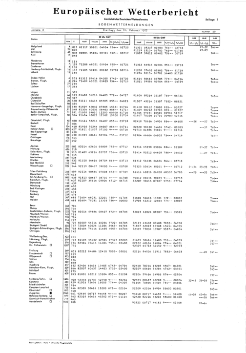 Europäischer Wetterbericht. Beilage 1, Bodenwettermeldungen. 1976-1994