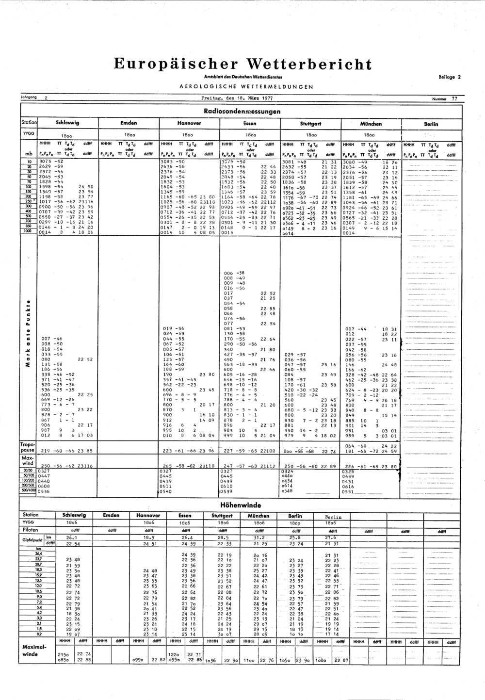 Europäischer Wetterbericht. Beilage 1, Bodenwettermeldungen. 1976-1994