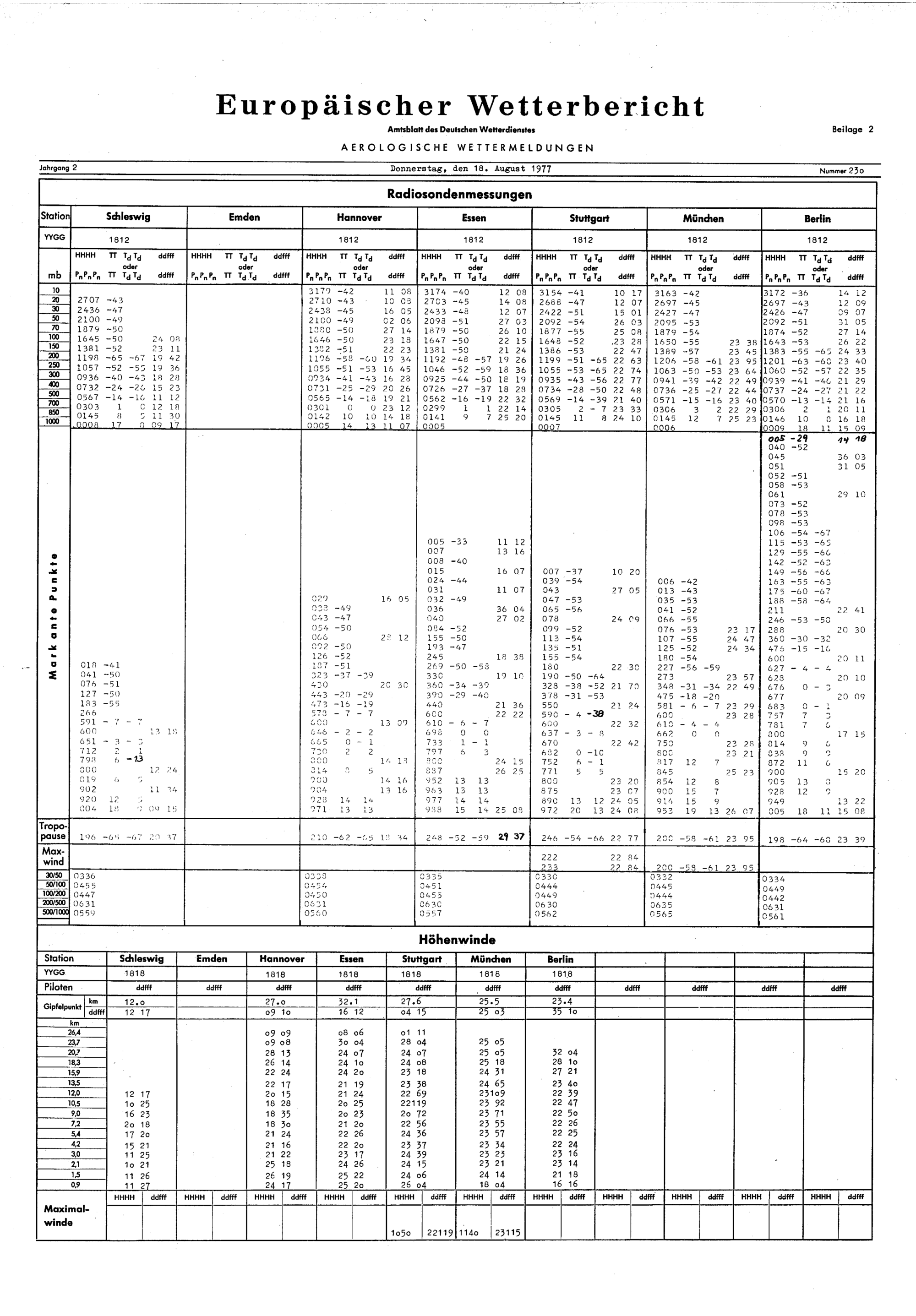 Europäischer Wetterbericht. Beilage 1, Bodenwettermeldungen. 1976-1994