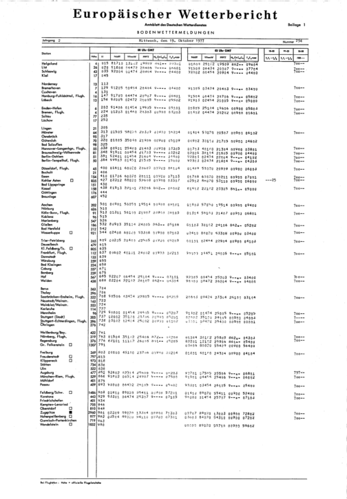 Europäischer Wetterbericht. Beilage 1, Bodenwettermeldungen. 1976-1994