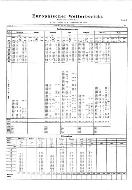 Europäischer Wetterbericht. Beilage 1, Bodenwettermeldungen. 1976-1994