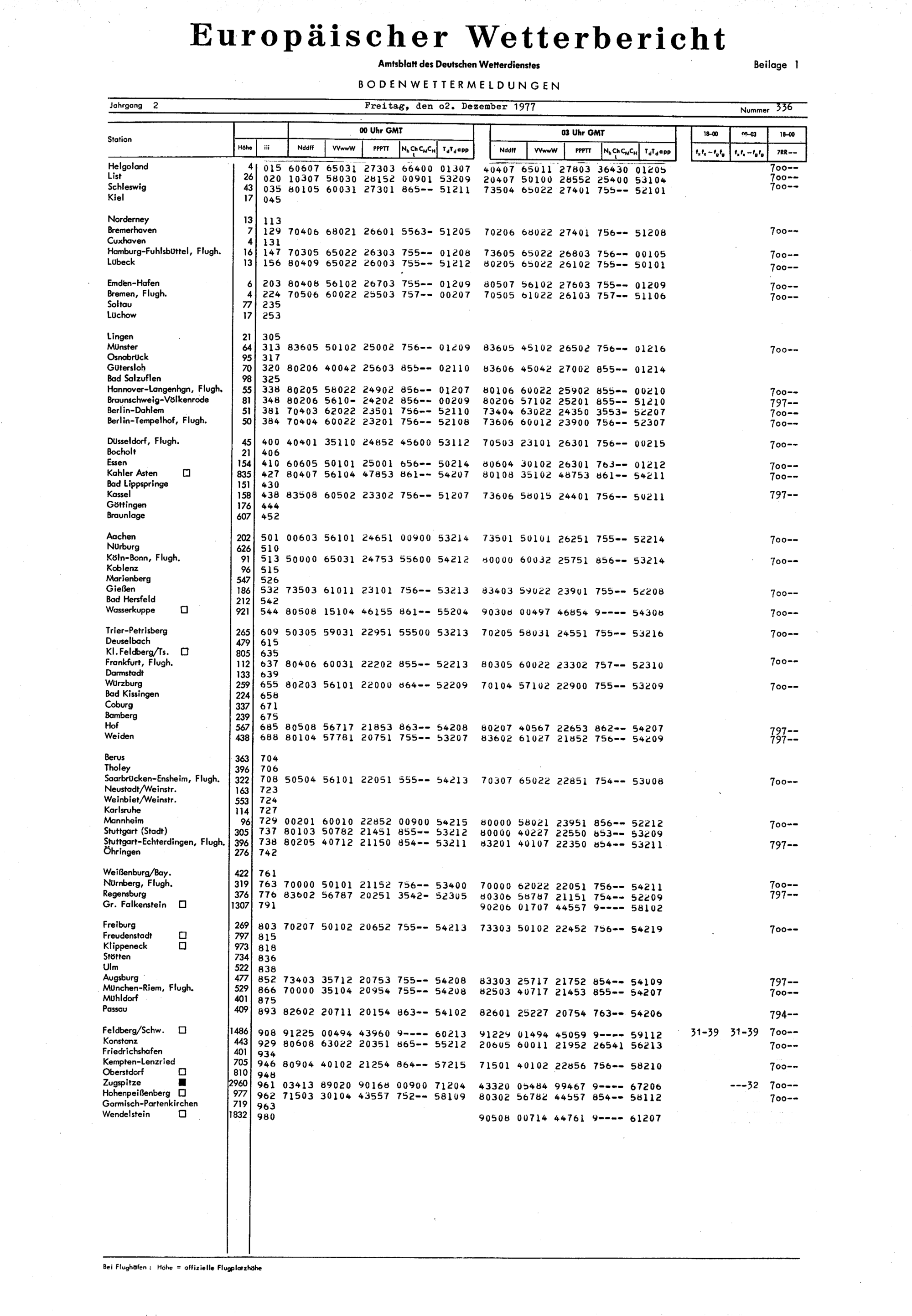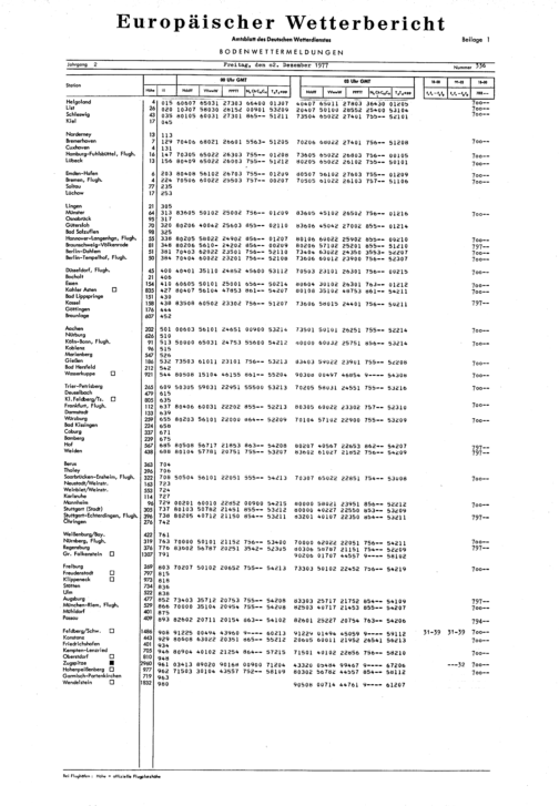 Europäischer Wetterbericht. Beilage 1, Bodenwettermeldungen. 1976-1994