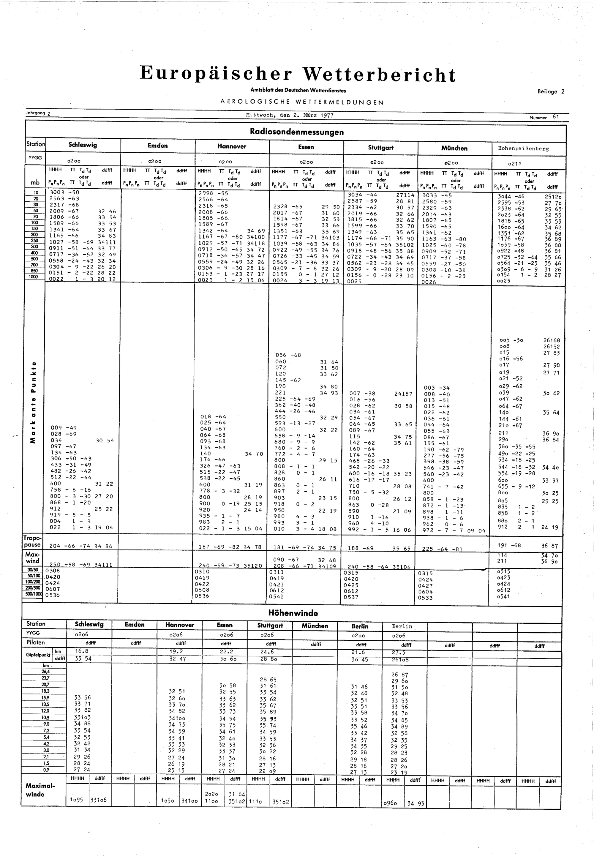 Europäischer Wetterbericht. Beilage 1, Bodenwettermeldungen. 1976-1994