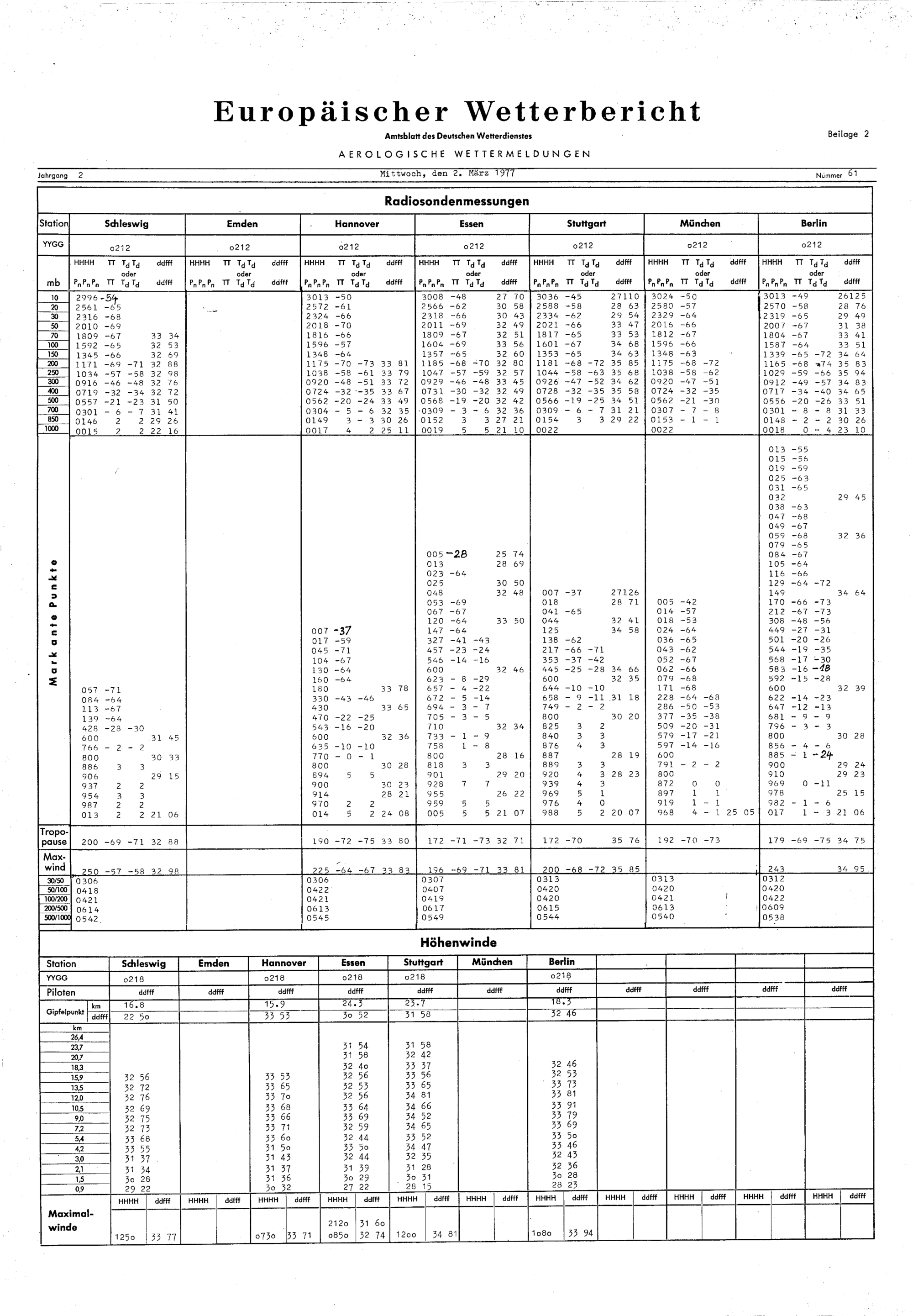 Europäischer Wetterbericht. Beilage 1, Bodenwettermeldungen. 1976-1994