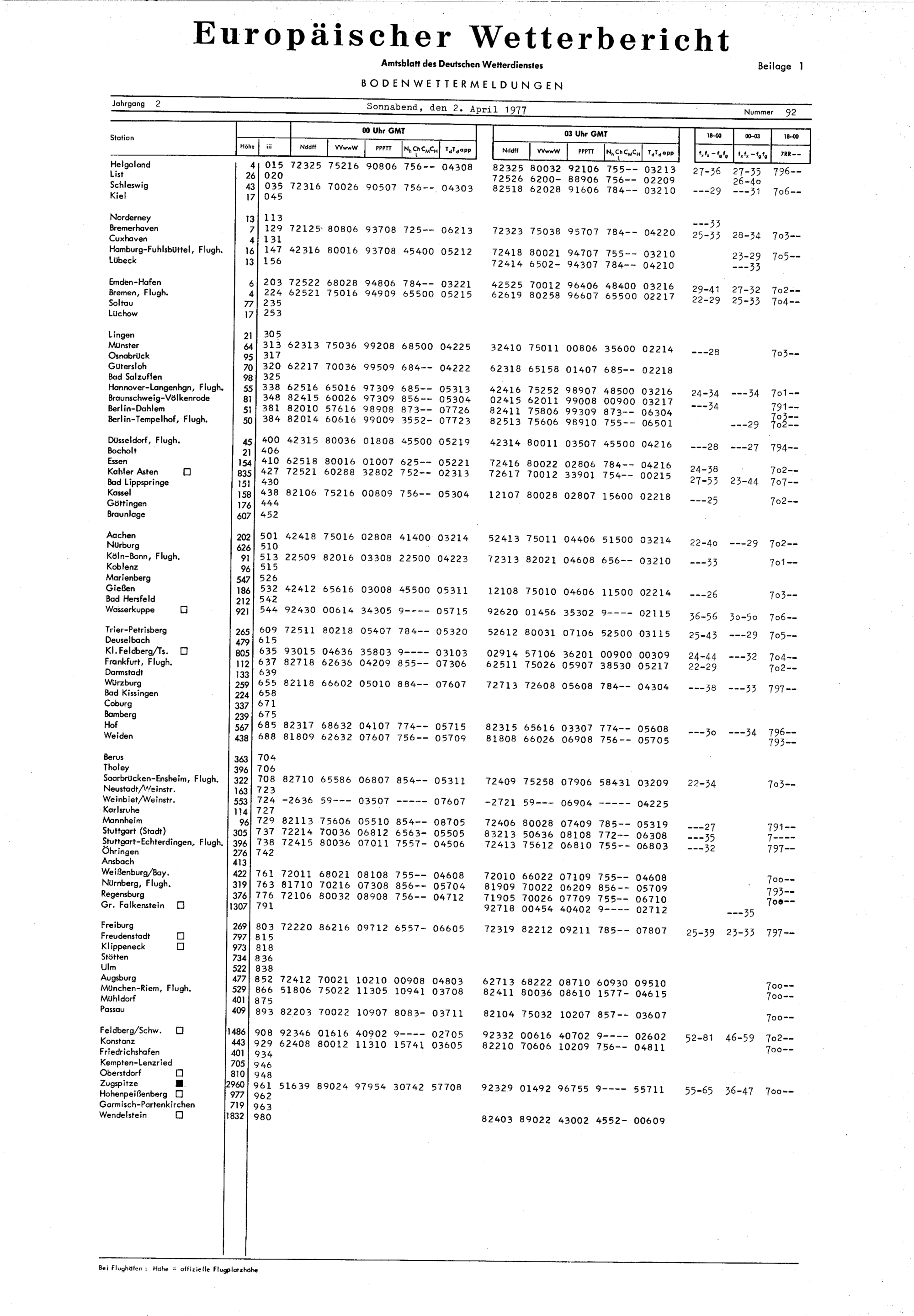 Europäischer Wetterbericht. Beilage 1, Bodenwettermeldungen. 1976-1994