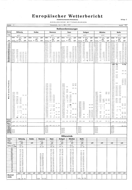 Europäischer Wetterbericht. Beilage 1, Bodenwettermeldungen. 1976-1994