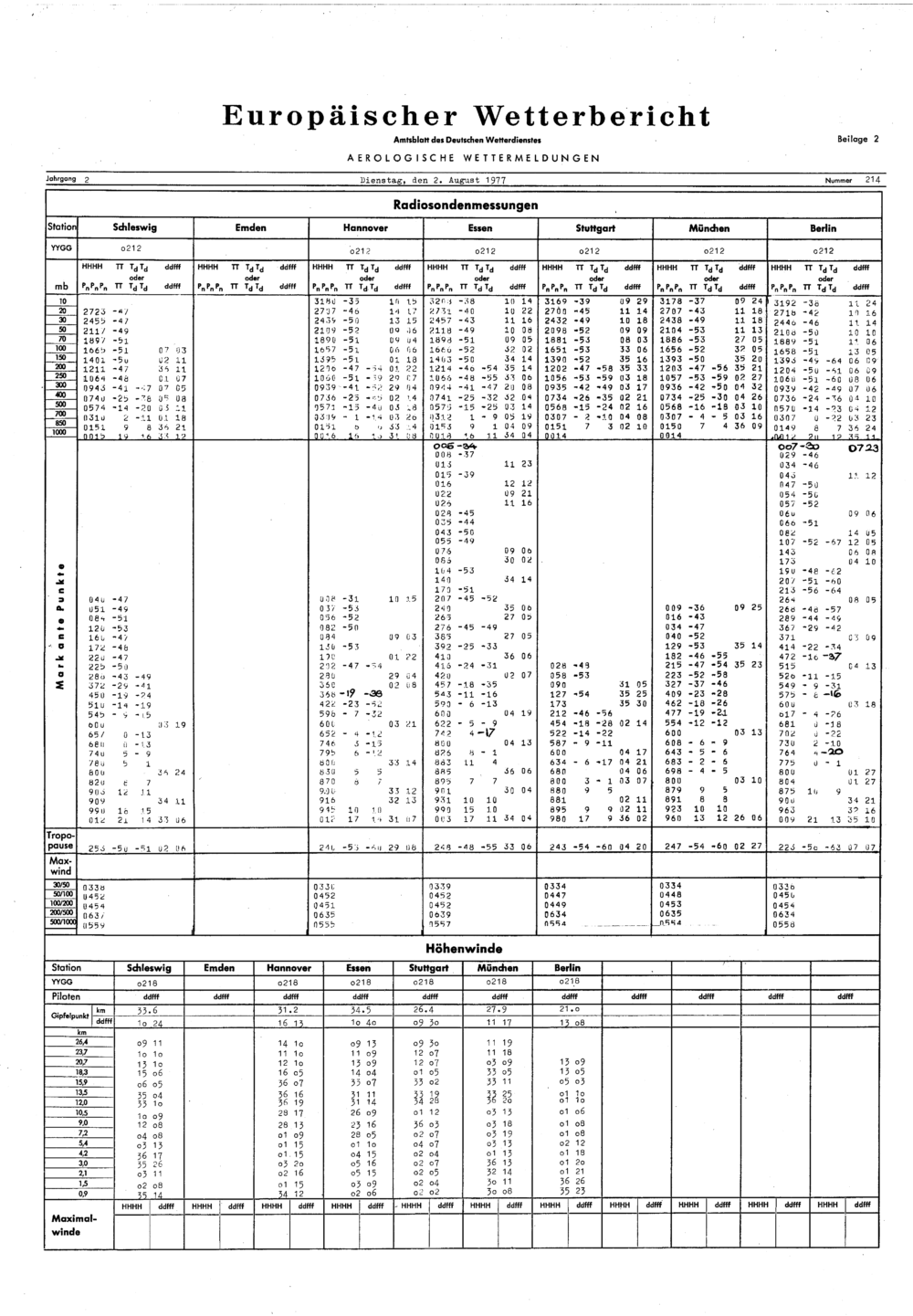 Europäischer Wetterbericht. Beilage 1, Bodenwettermeldungen. 1976-1994