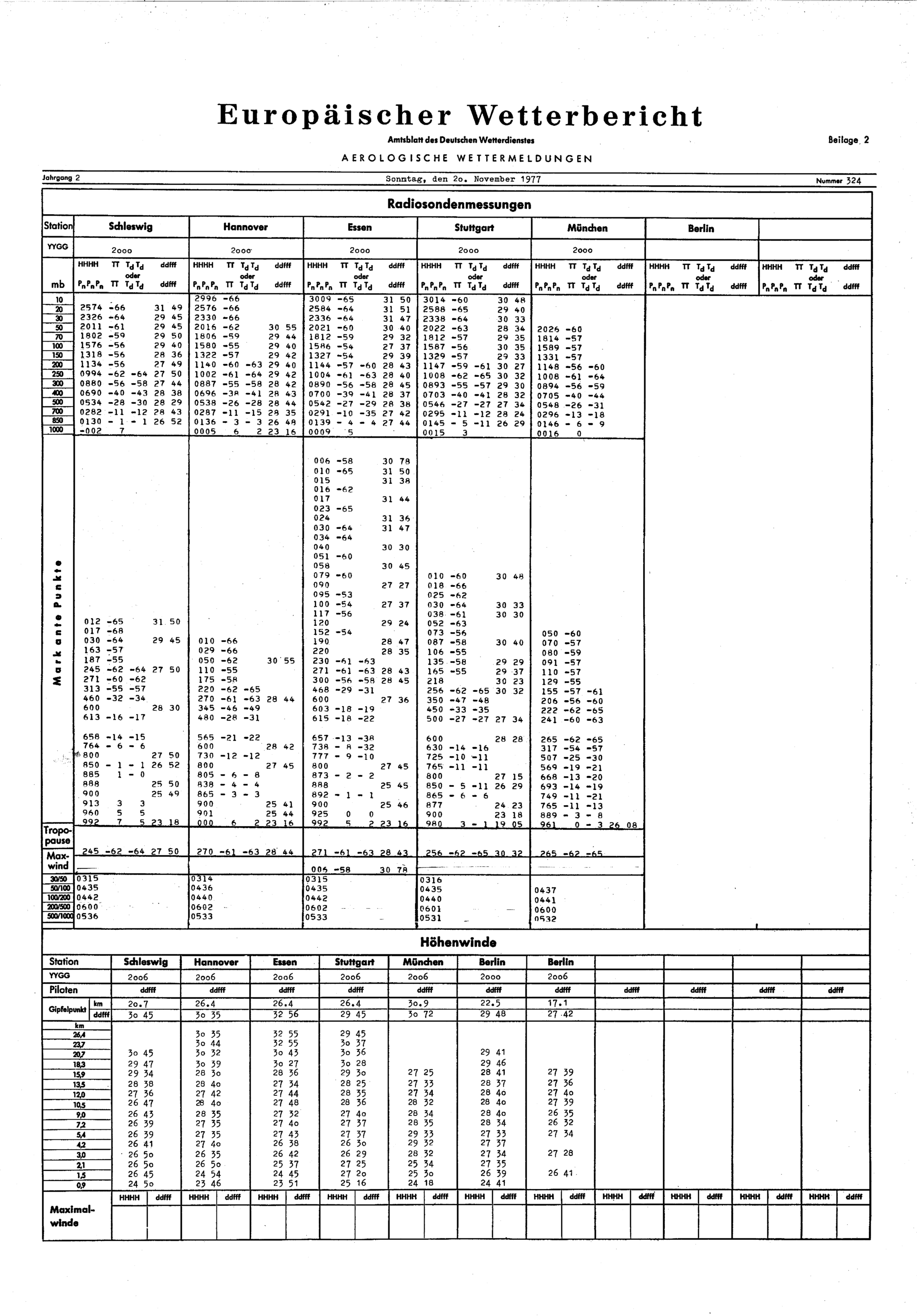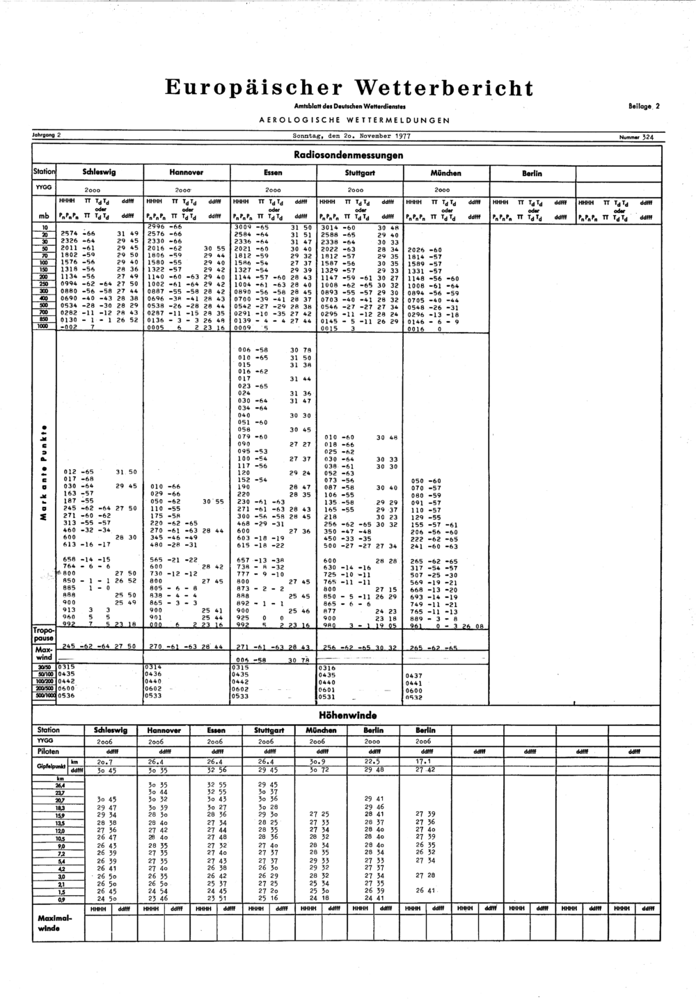 Europäischer Wetterbericht. Beilage 1, Bodenwettermeldungen. 1976-1994