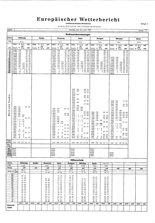 Europäischer Wetterbericht. Beilage 1, Bodenwettermeldungen. 1976-1994