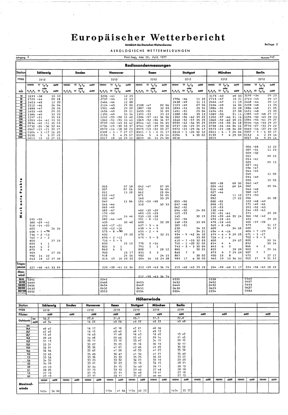 Europäischer Wetterbericht. Beilage 1, Bodenwettermeldungen. 1976-1994