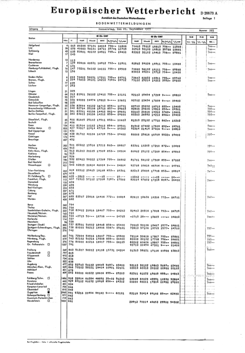 Europäischer Wetterbericht. Beilage 1, Bodenwettermeldungen. 1976-1994