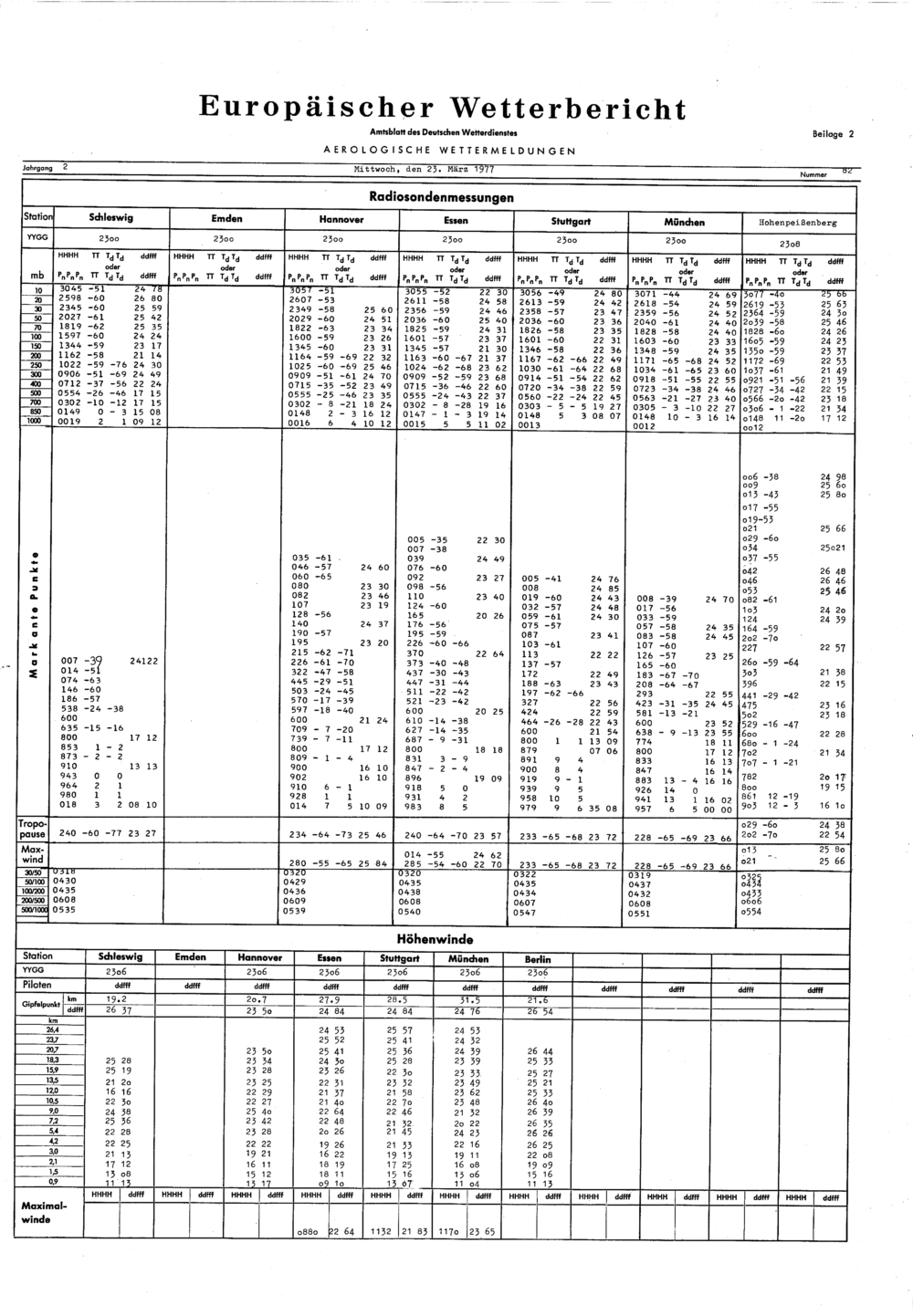 Europäischer Wetterbericht. Beilage 1, Bodenwettermeldungen. 1976-1994
