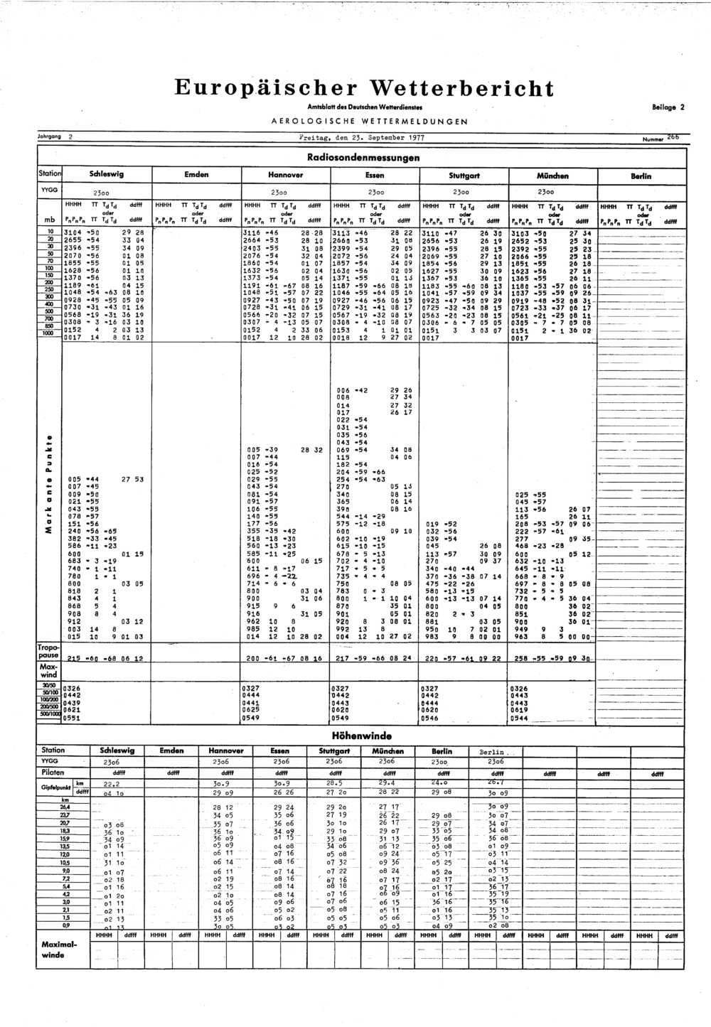 Europäischer Wetterbericht. Beilage 1, Bodenwettermeldungen. 1976-1994