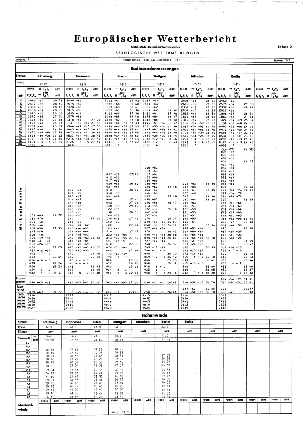 Europäischer Wetterbericht. Beilage 1, Bodenwettermeldungen. 1976-1994