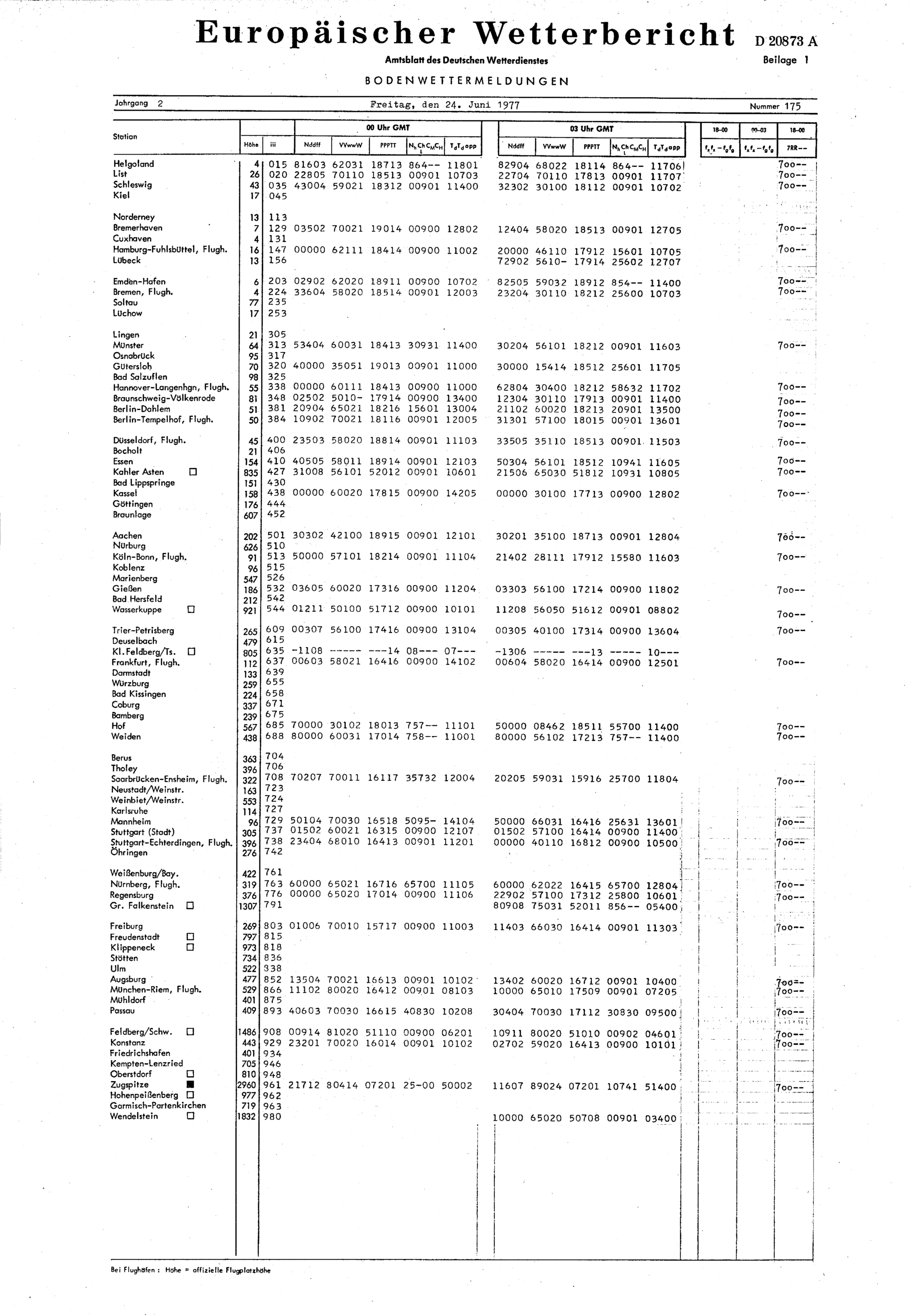 Europäischer Wetterbericht. Beilage 1, Bodenwettermeldungen. 1976-1994