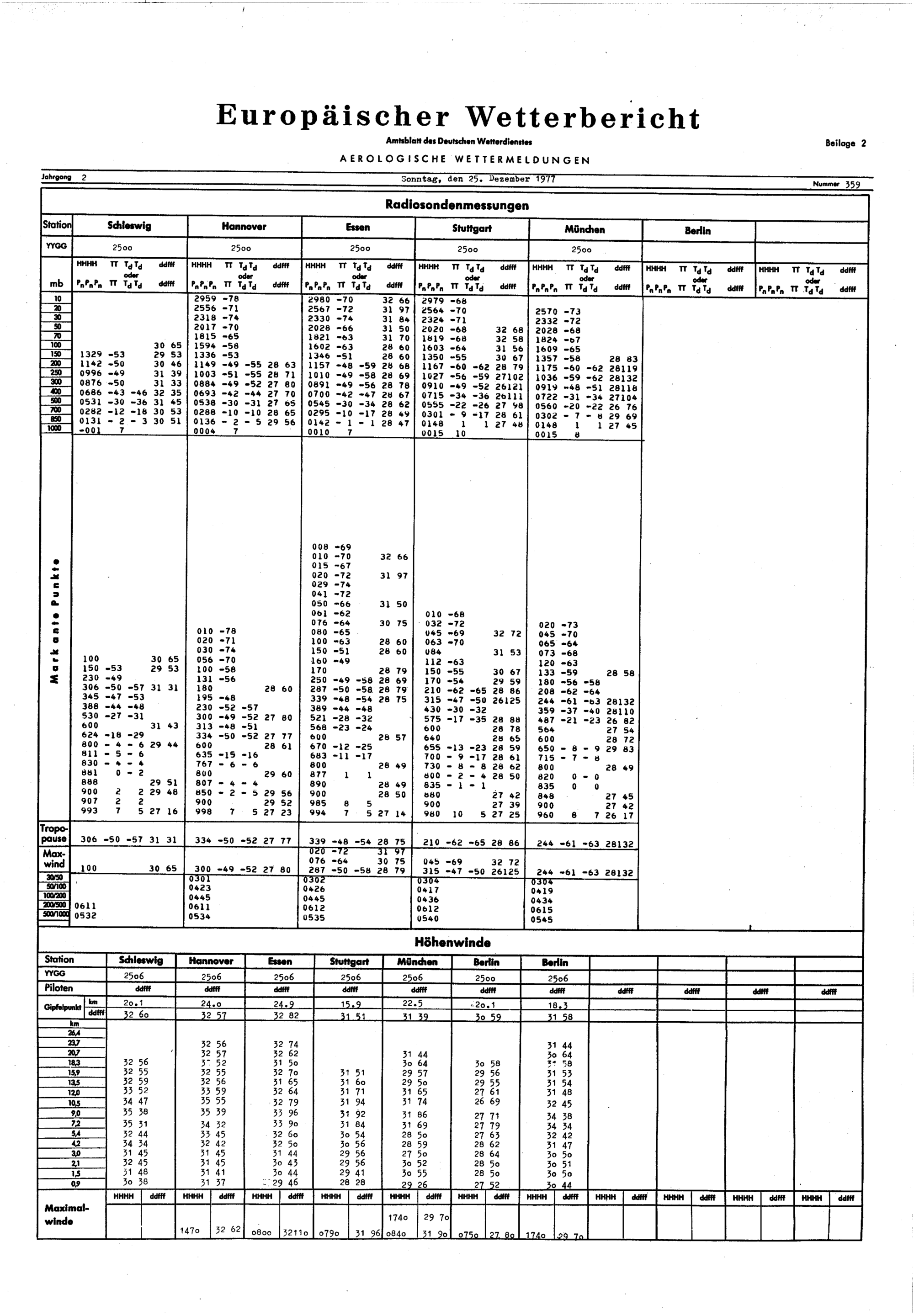 Europäischer Wetterbericht. Beilage 1, Bodenwettermeldungen. 1976-1994