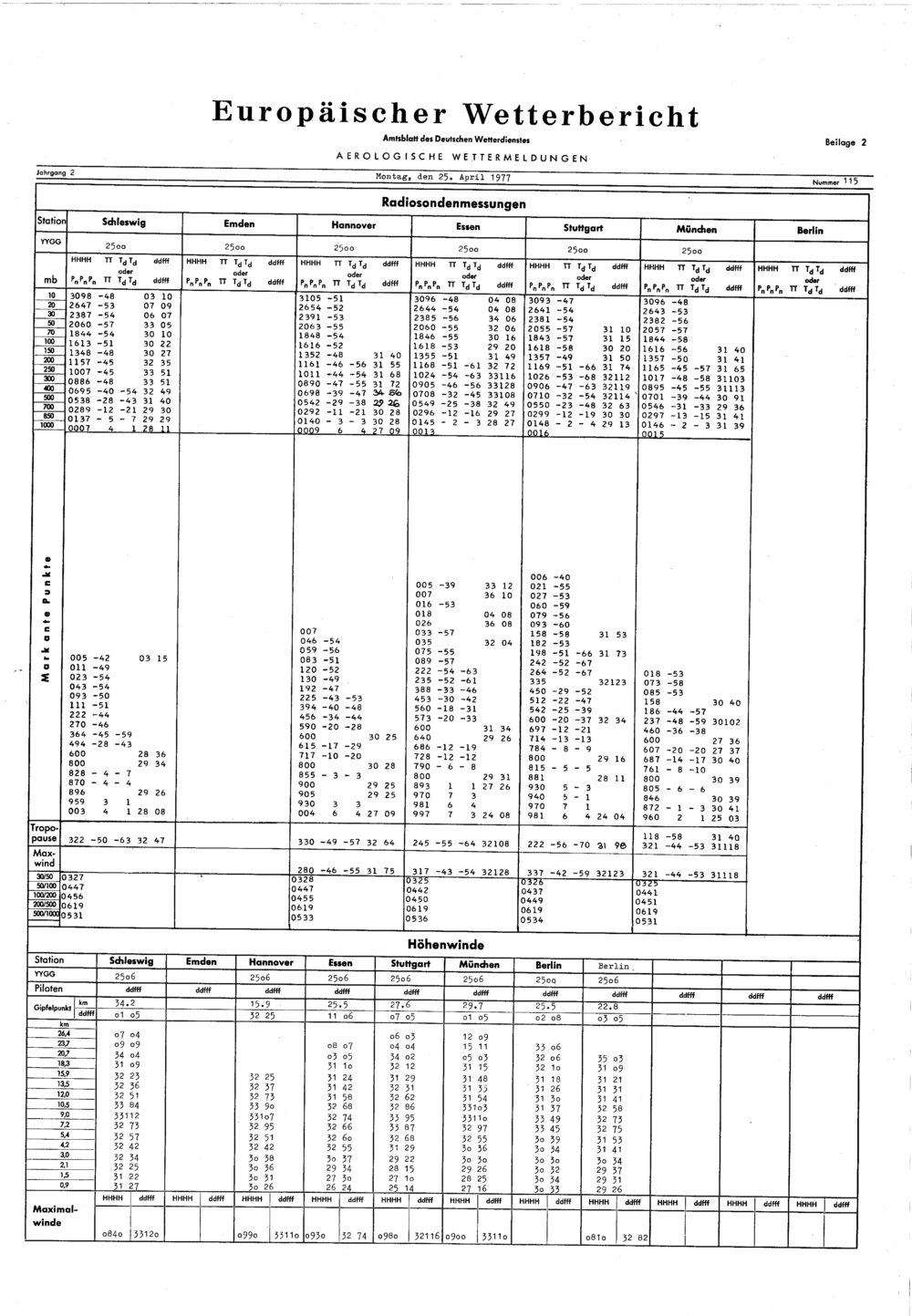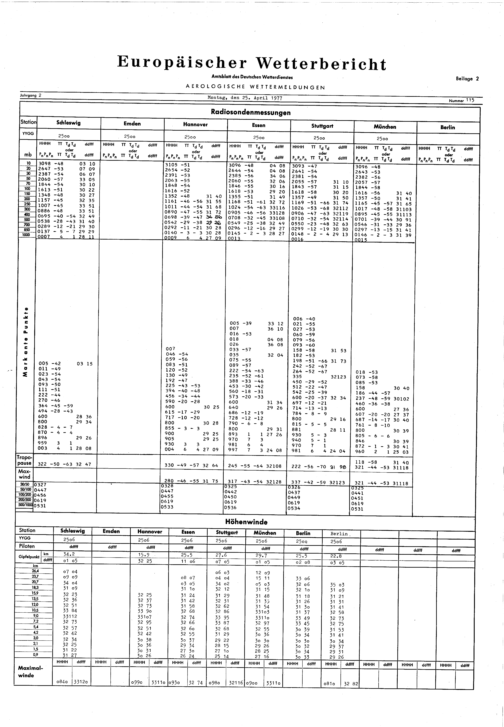 Europäischer Wetterbericht. Beilage 1, Bodenwettermeldungen. 1976-1994