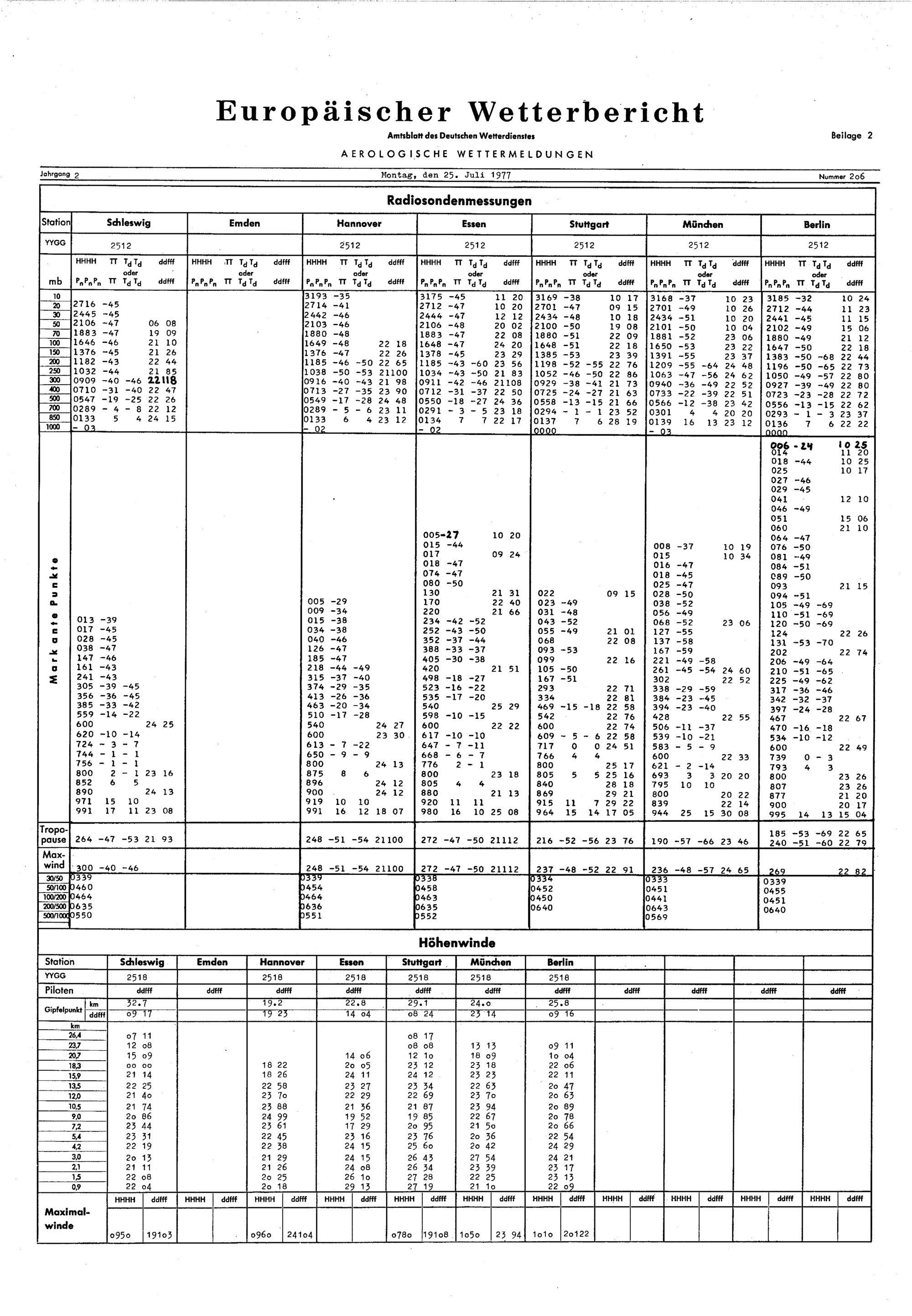 Europäischer Wetterbericht. Beilage 1, Bodenwettermeldungen. 1976-1994