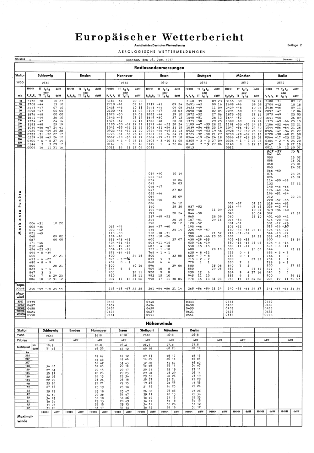 Europäischer Wetterbericht. Beilage 1, Bodenwettermeldungen. 1976-1994