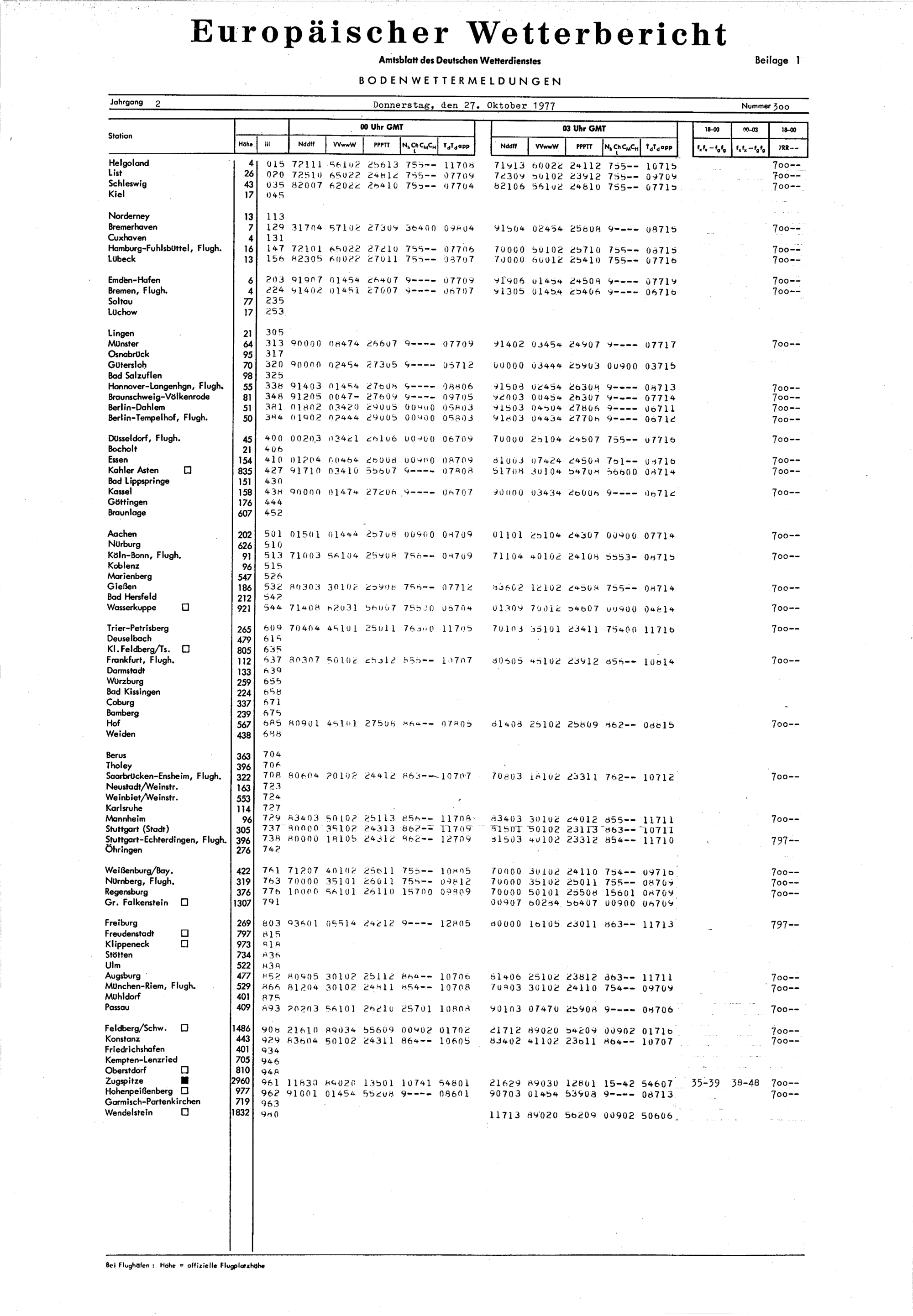 Europäischer Wetterbericht. Beilage 1, Bodenwettermeldungen. 1976-1994