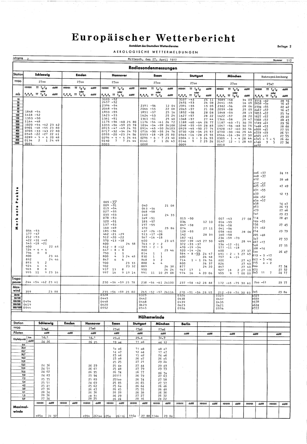 Europäischer Wetterbericht. Beilage 1, Bodenwettermeldungen. 1976-1994