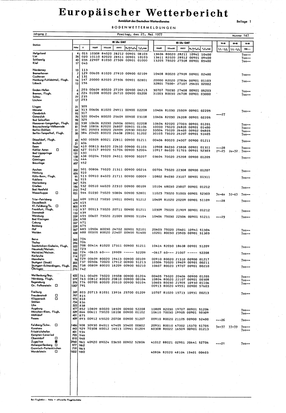 Europäischer Wetterbericht. Beilage 1, Bodenwettermeldungen. 1976-1994