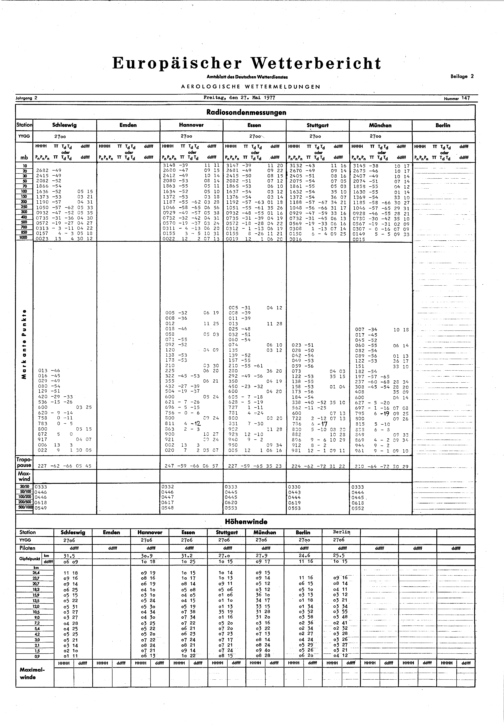 Europäischer Wetterbericht. Beilage 1, Bodenwettermeldungen. 1976-1994