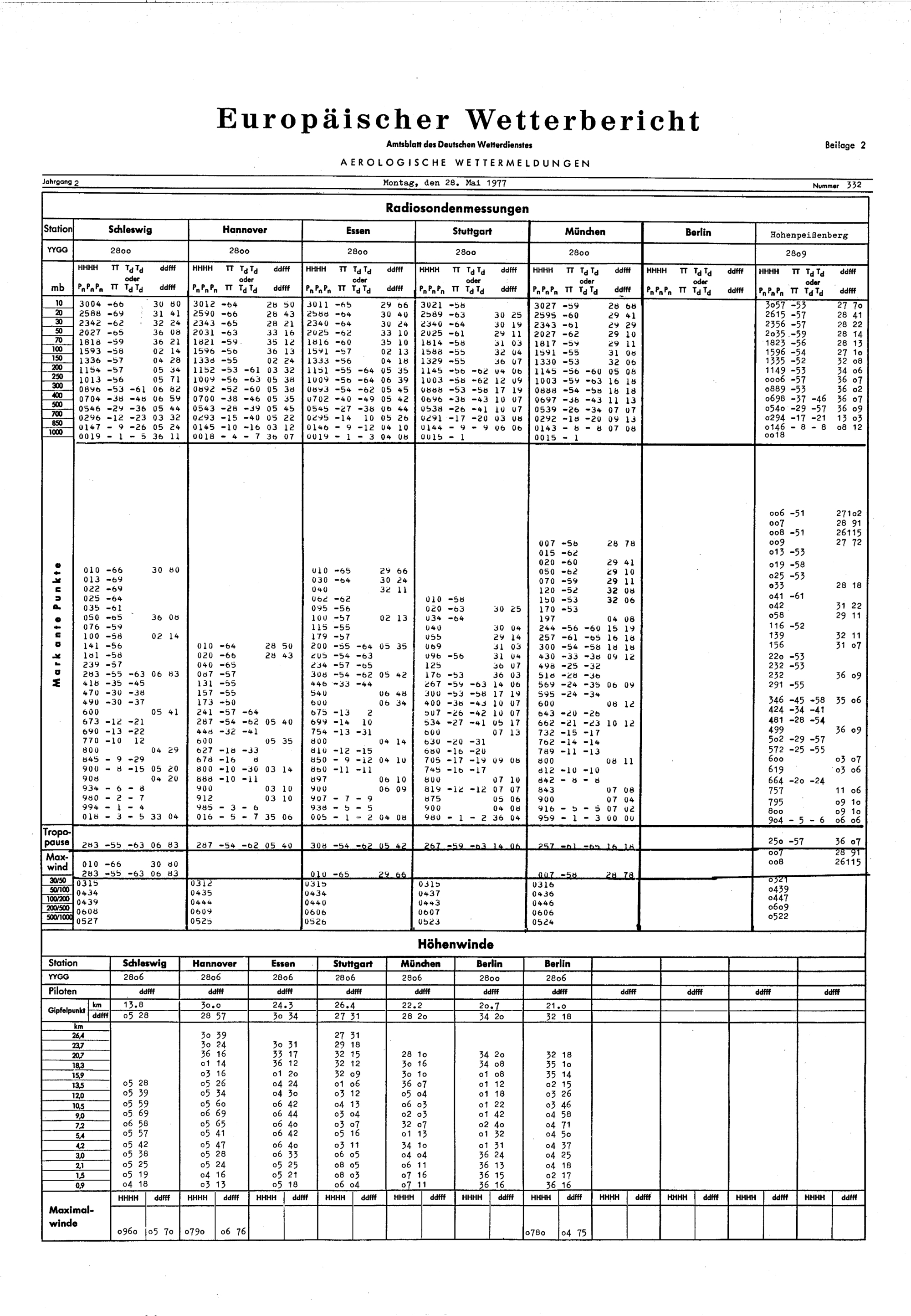 Europäischer Wetterbericht. Beilage 1, Bodenwettermeldungen. 1976-1994