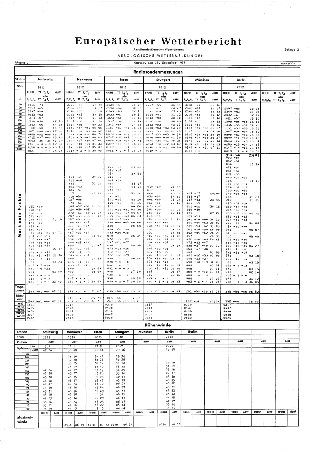 Europäischer Wetterbericht. Beilage 1, Bodenwettermeldungen. 1976-1994