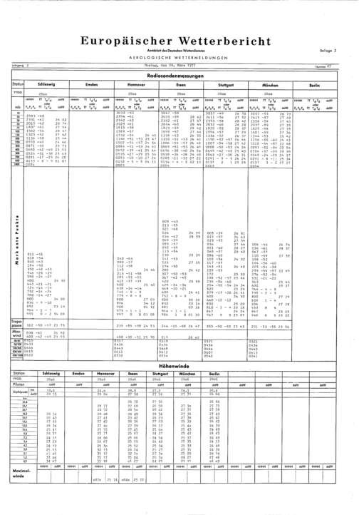 Europäischer Wetterbericht. Beilage 1, Bodenwettermeldungen. 1976-1994