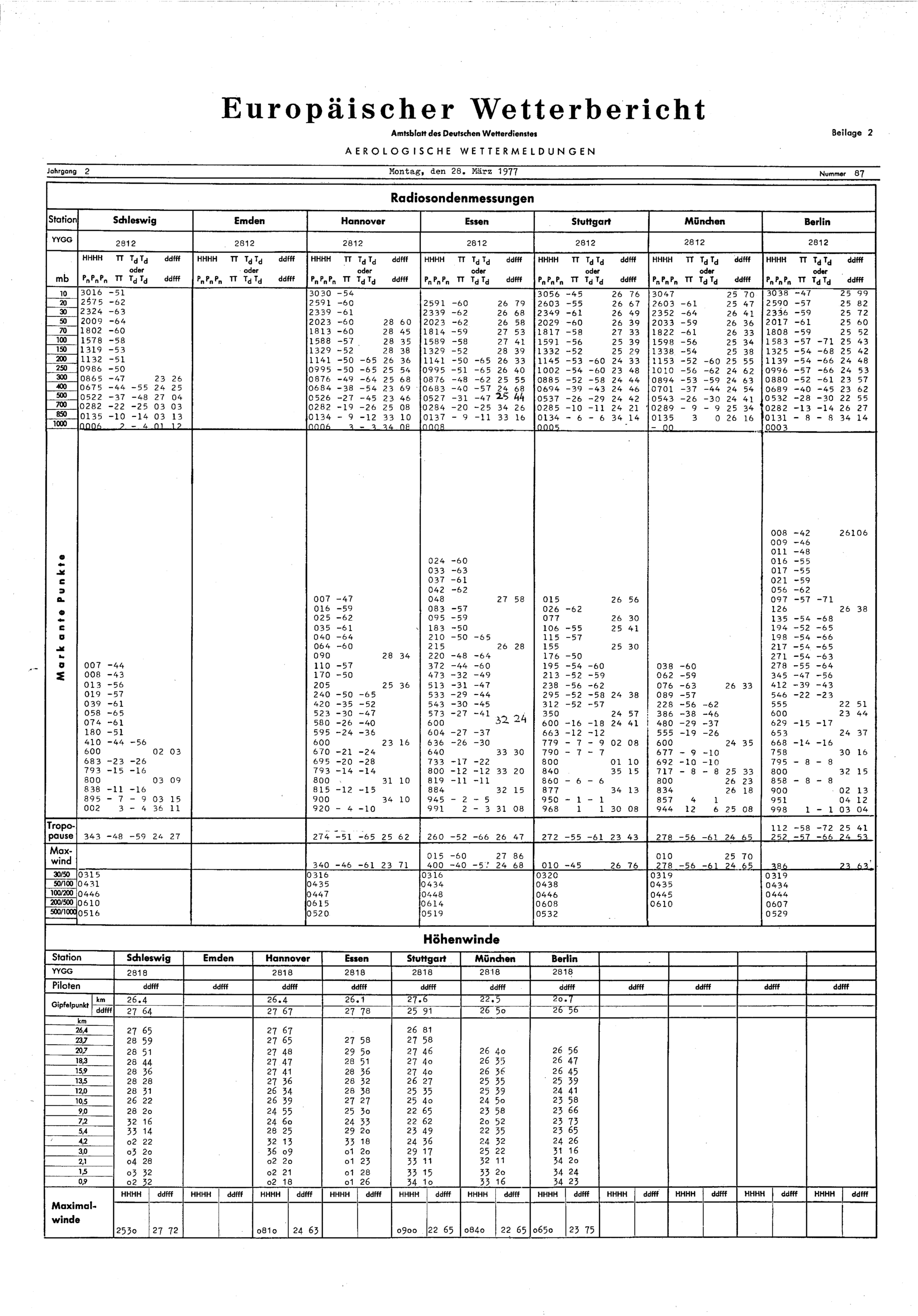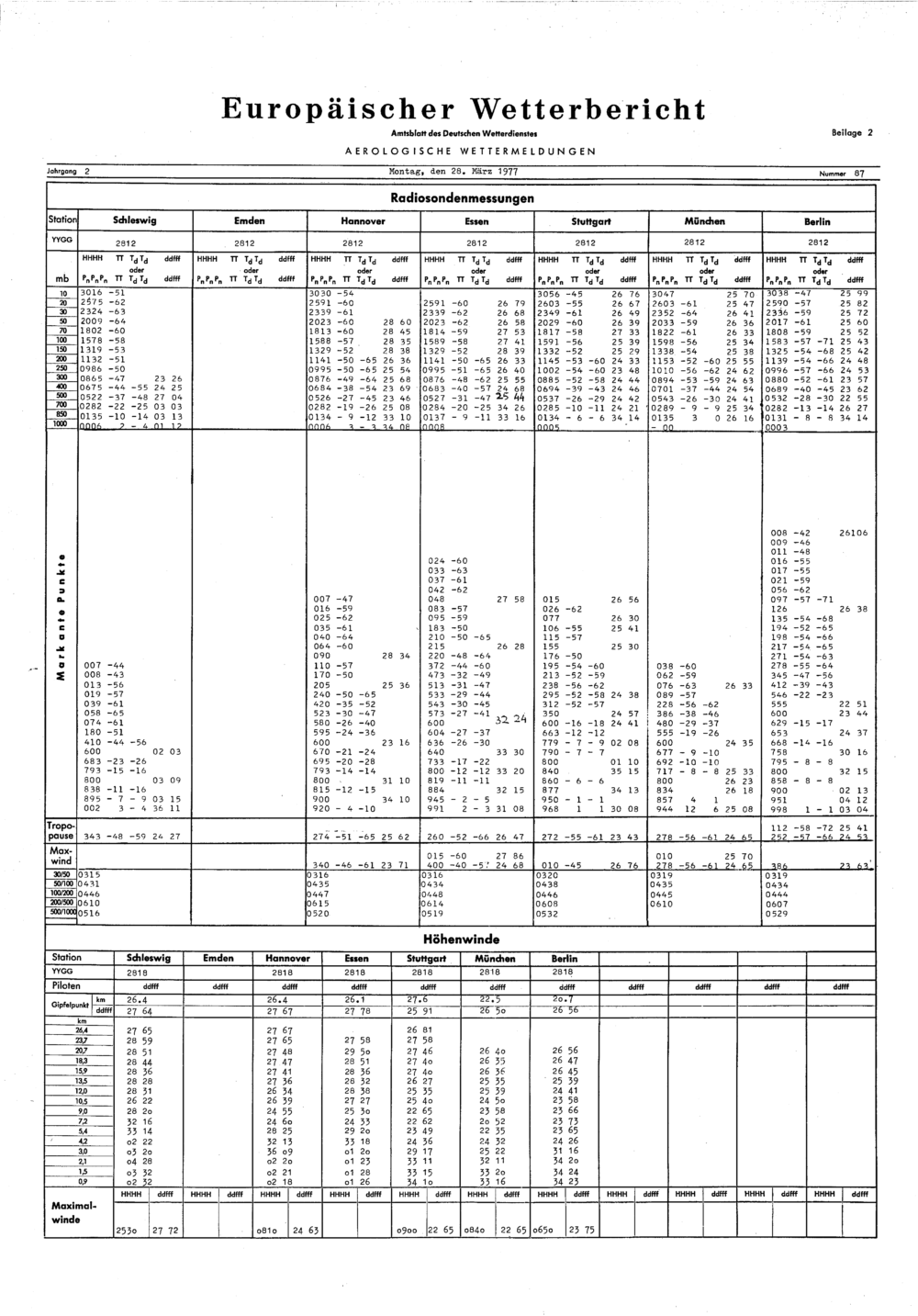 Europäischer Wetterbericht. Beilage 1, Bodenwettermeldungen. 1976-1994