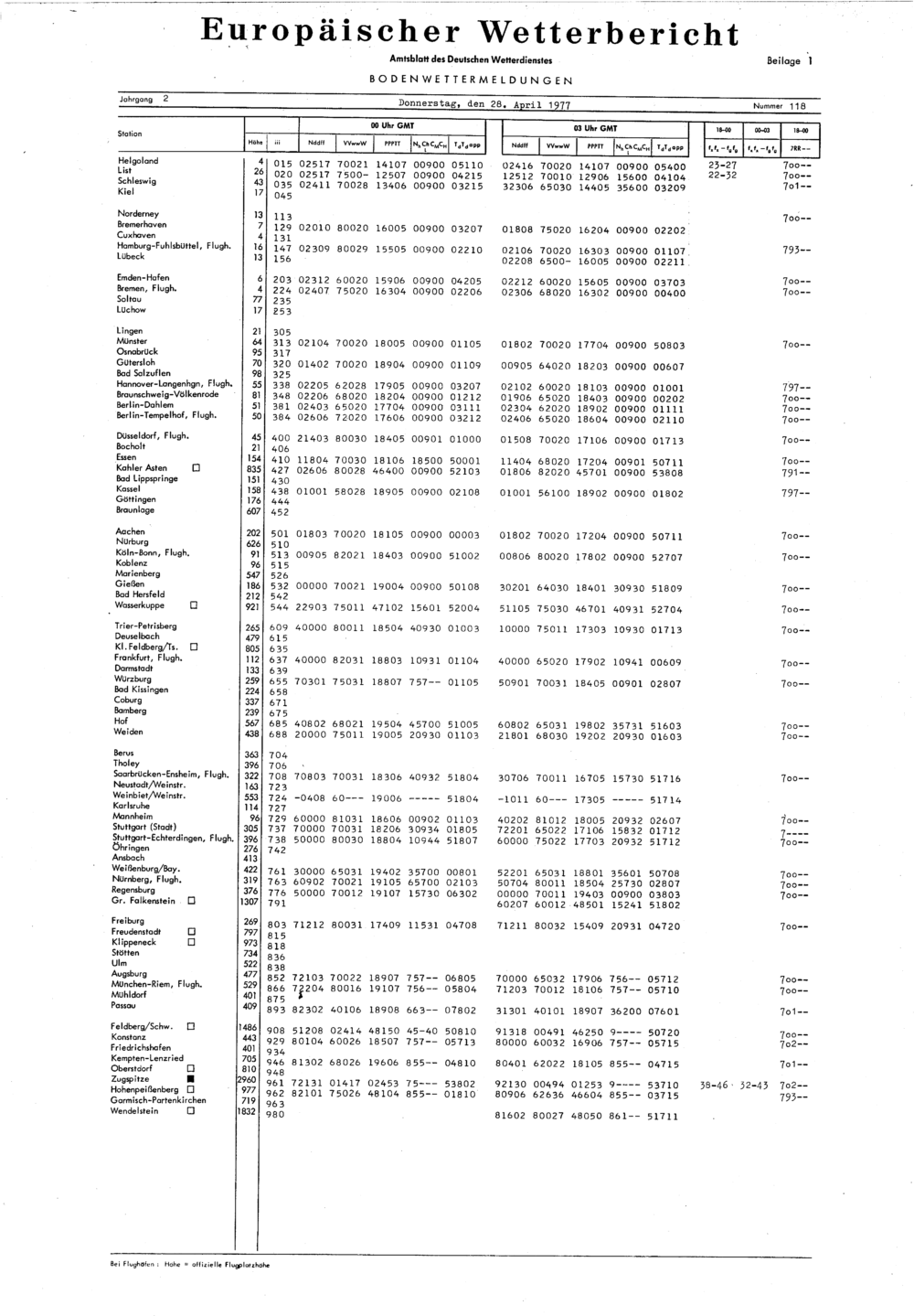 Europäischer Wetterbericht. Beilage 1, Bodenwettermeldungen. 1976-1994