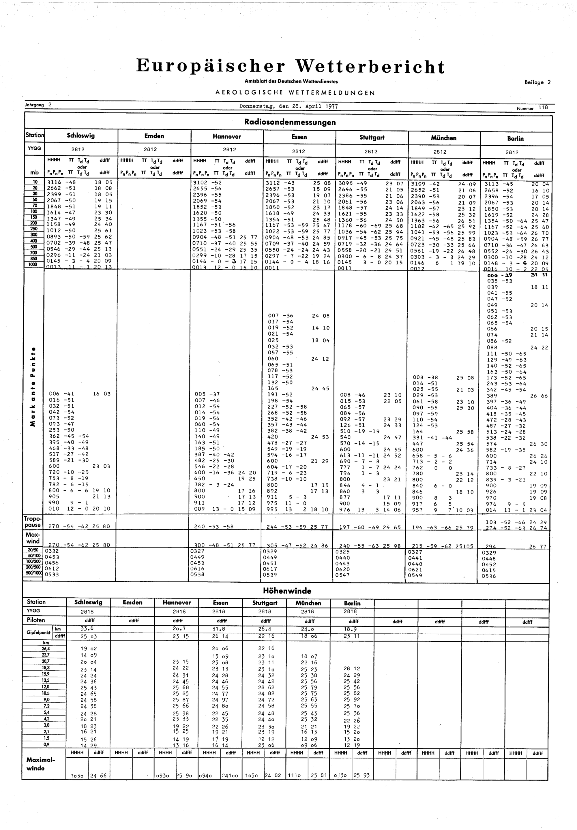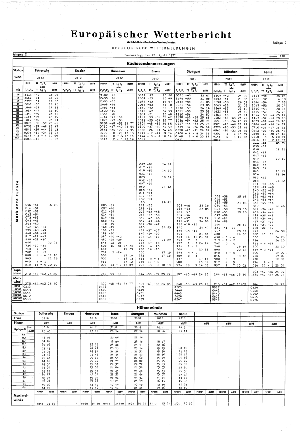 Europäischer Wetterbericht. Beilage 1, Bodenwettermeldungen. 1976-1994
