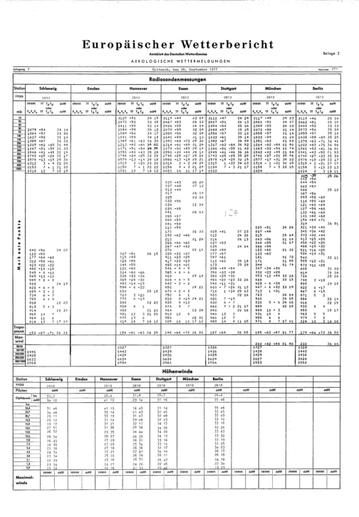 Europäischer Wetterbericht. Beilage 1, Bodenwettermeldungen. 1976-1994
