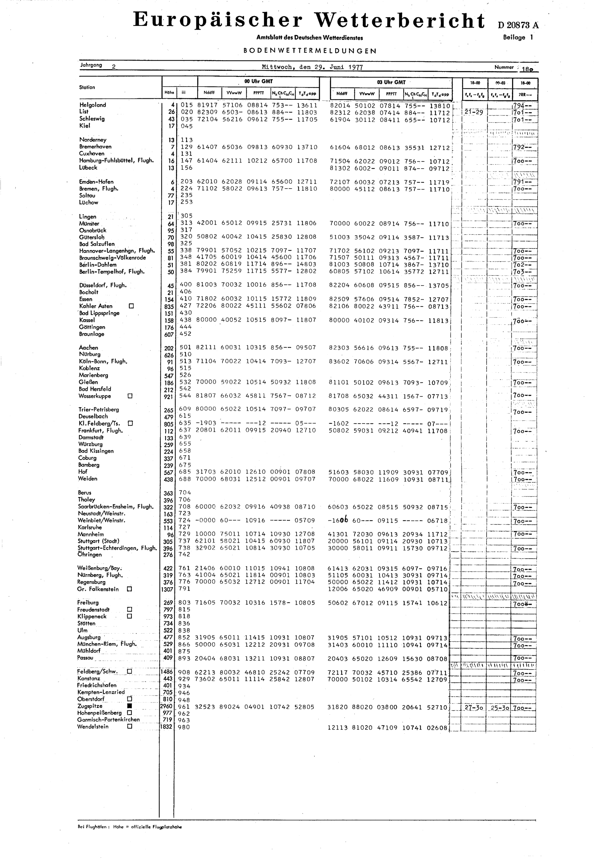 Europäischer Wetterbericht. Beilage 1, Bodenwettermeldungen. 1976-1994