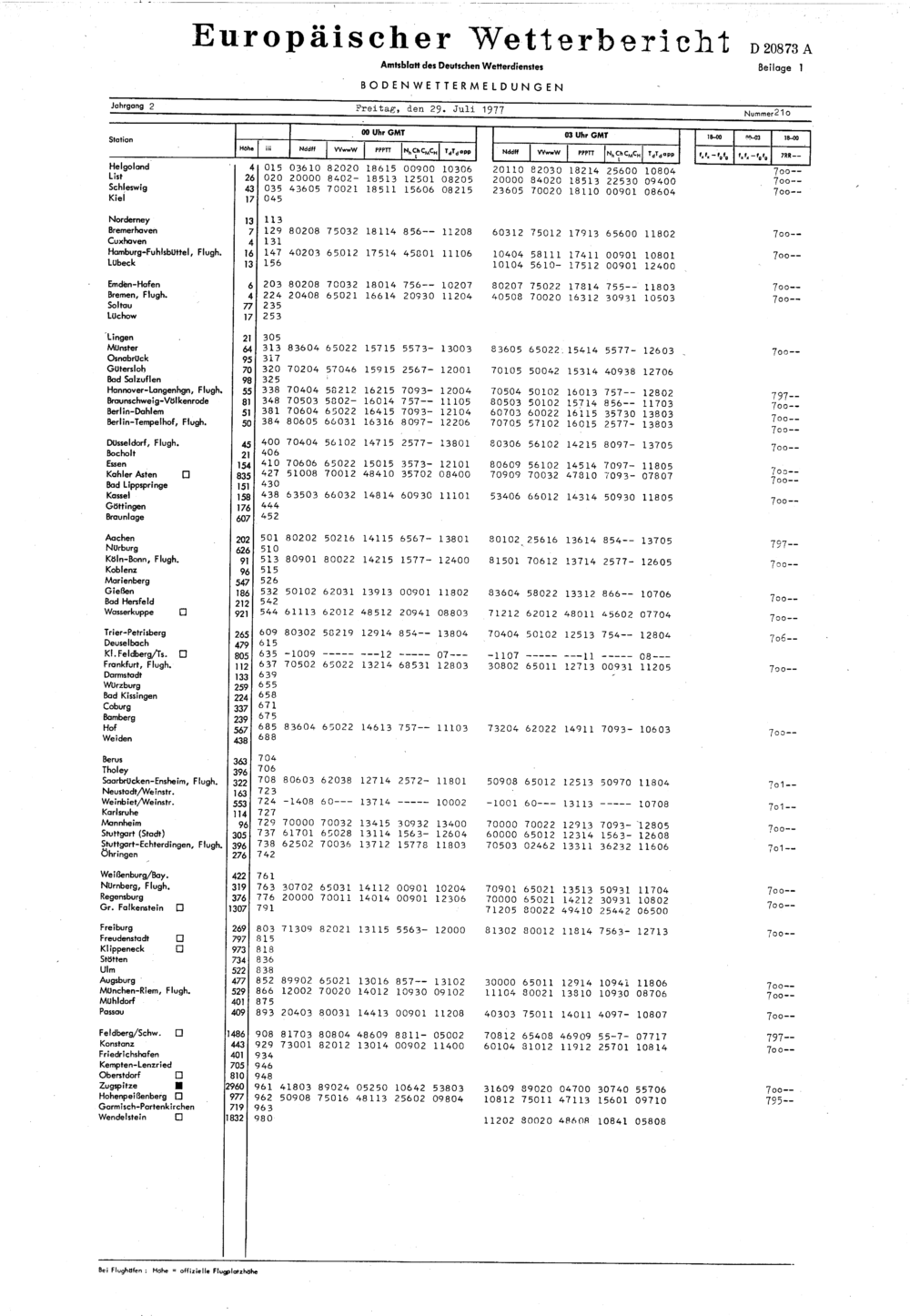 Europäischer Wetterbericht. Beilage 1, Bodenwettermeldungen. 1976-1994
