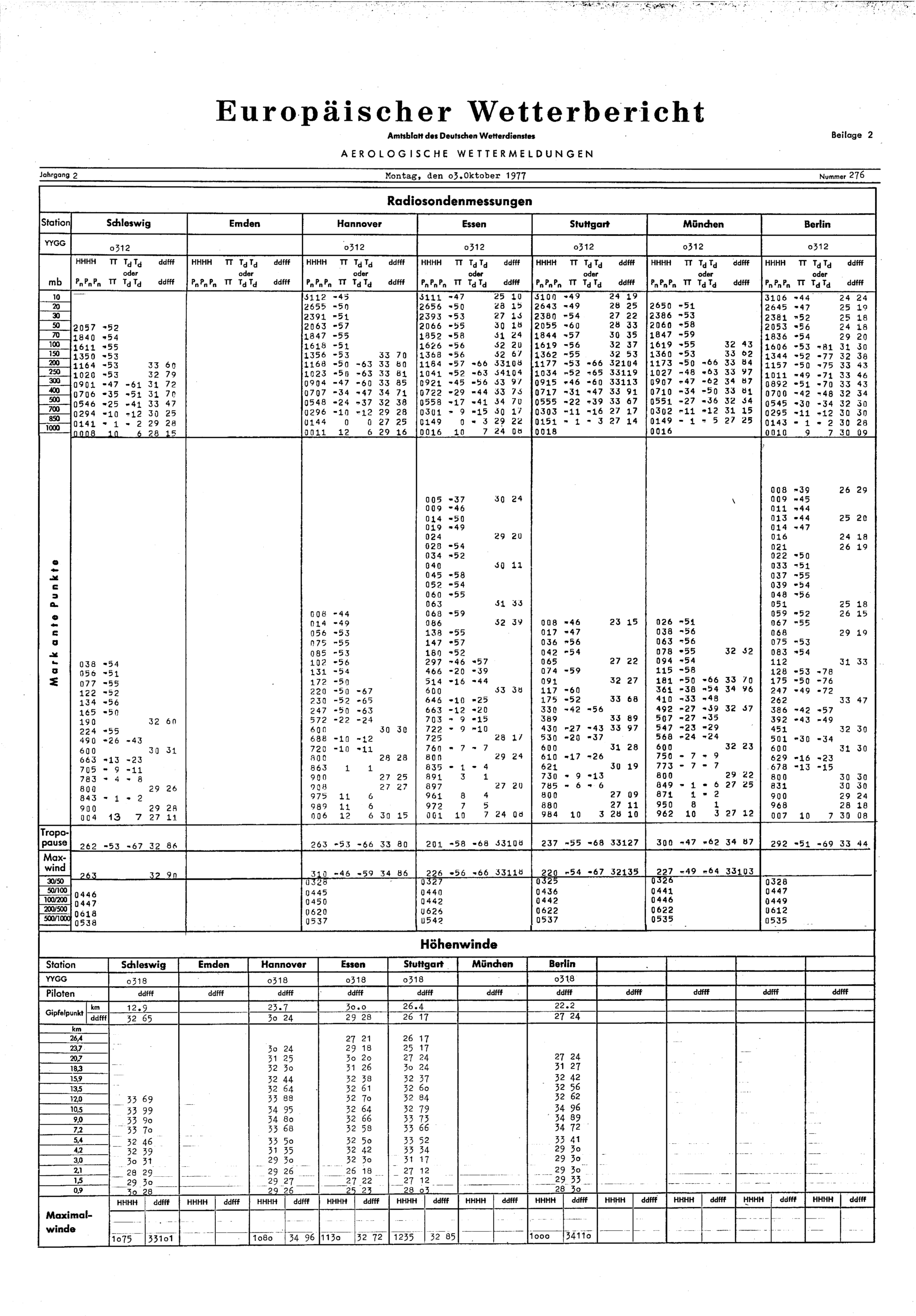 Europäischer Wetterbericht. Beilage 1, Bodenwettermeldungen. 1976-1994