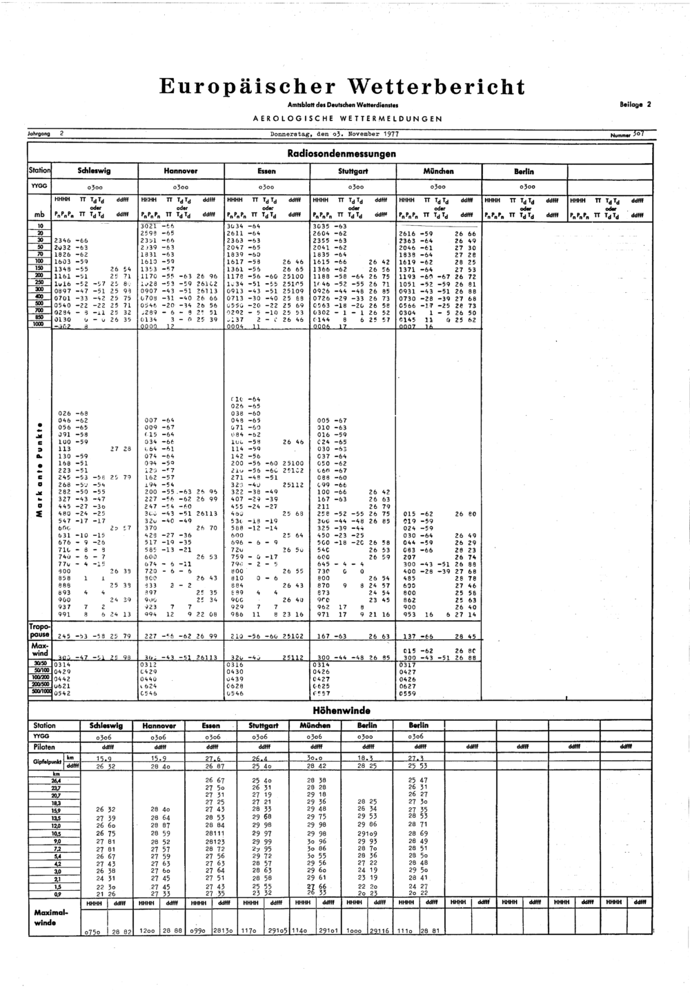 Europäischer Wetterbericht. Beilage 1, Bodenwettermeldungen. 1976-1994