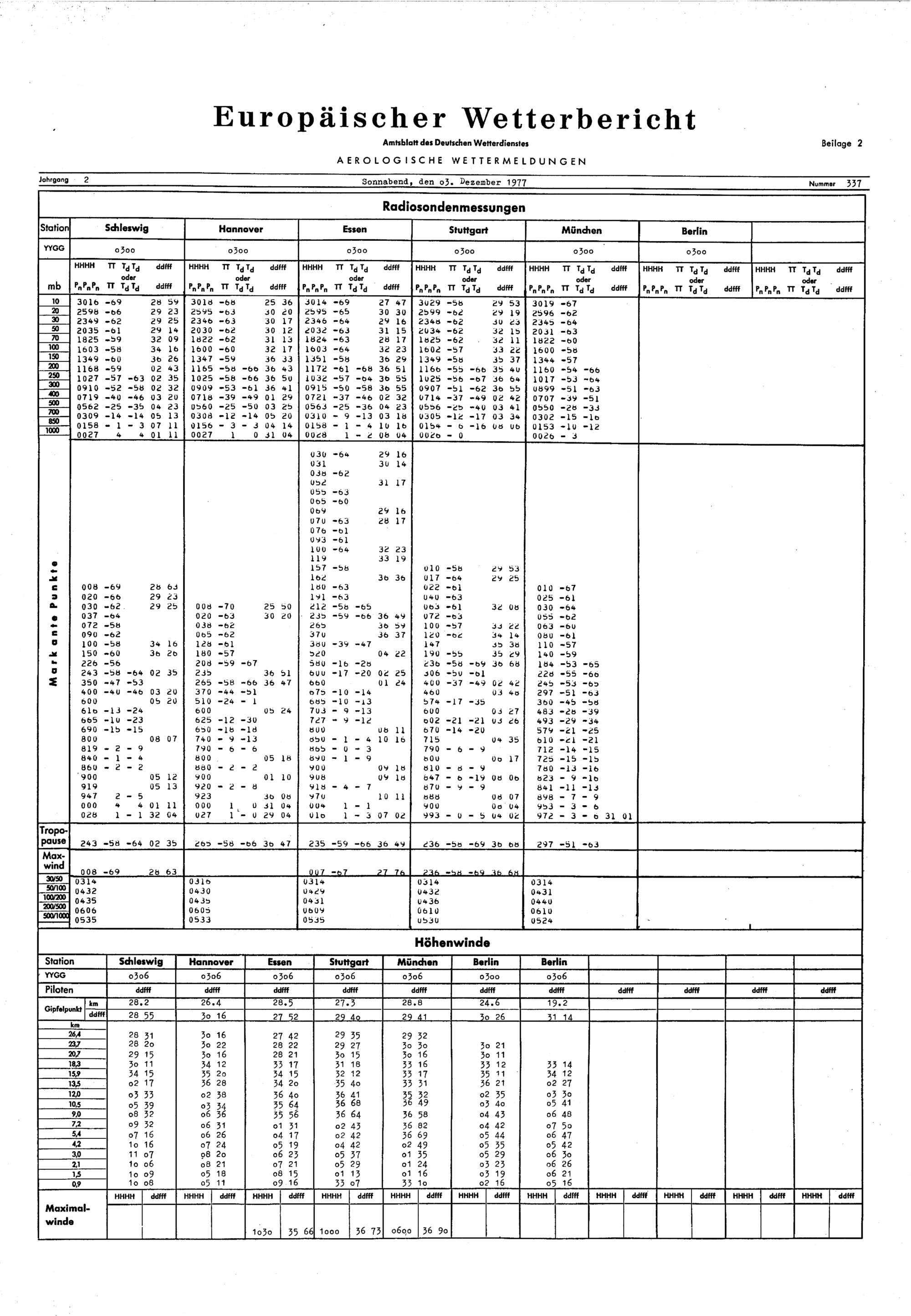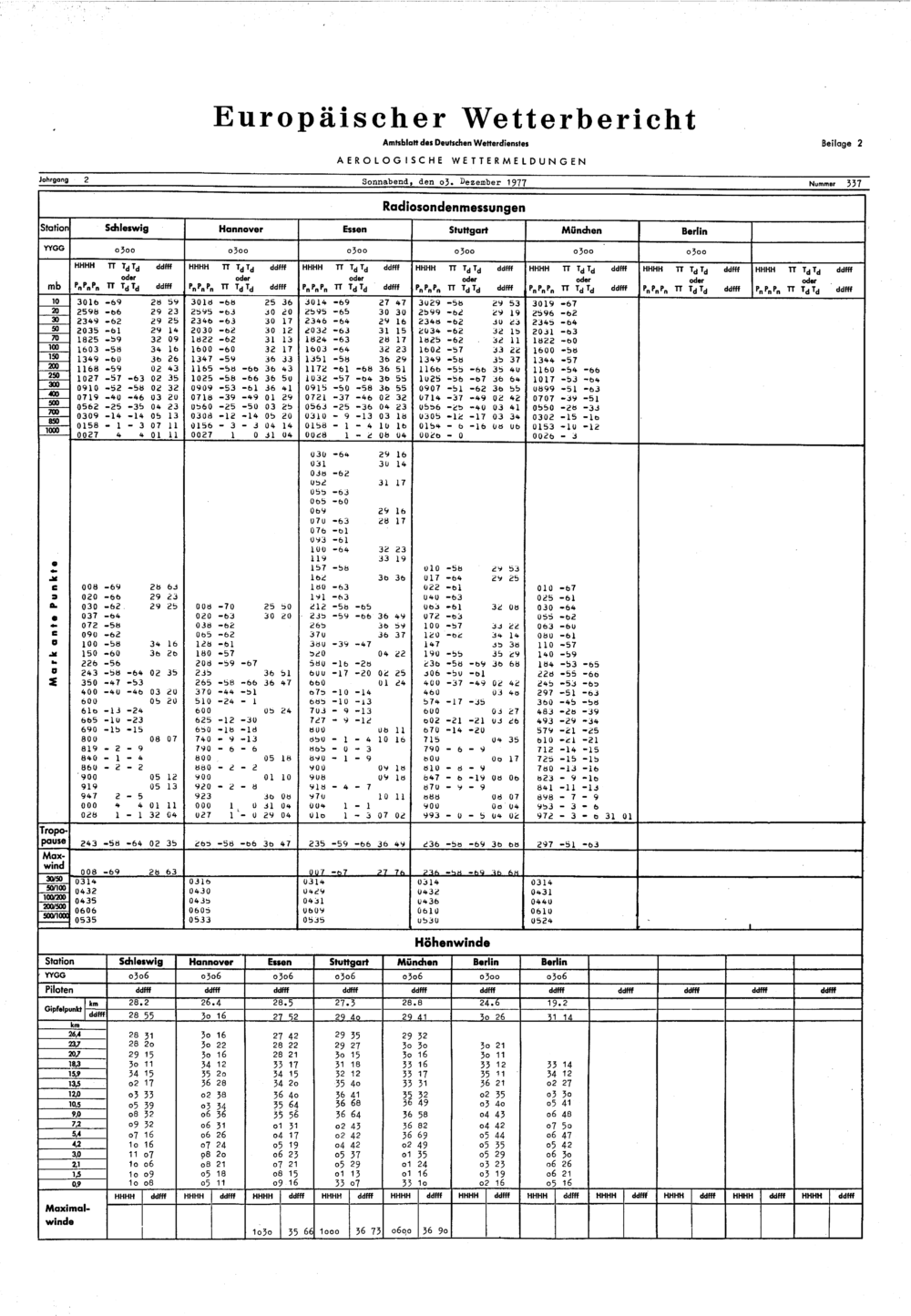 Europäischer Wetterbericht. Beilage 1, Bodenwettermeldungen. 1976-1994
