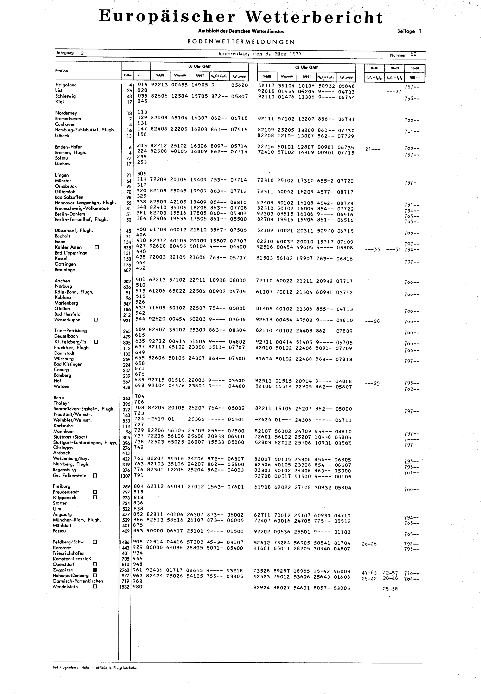 Europäischer Wetterbericht. Beilage 1, Bodenwettermeldungen. 1976-1994