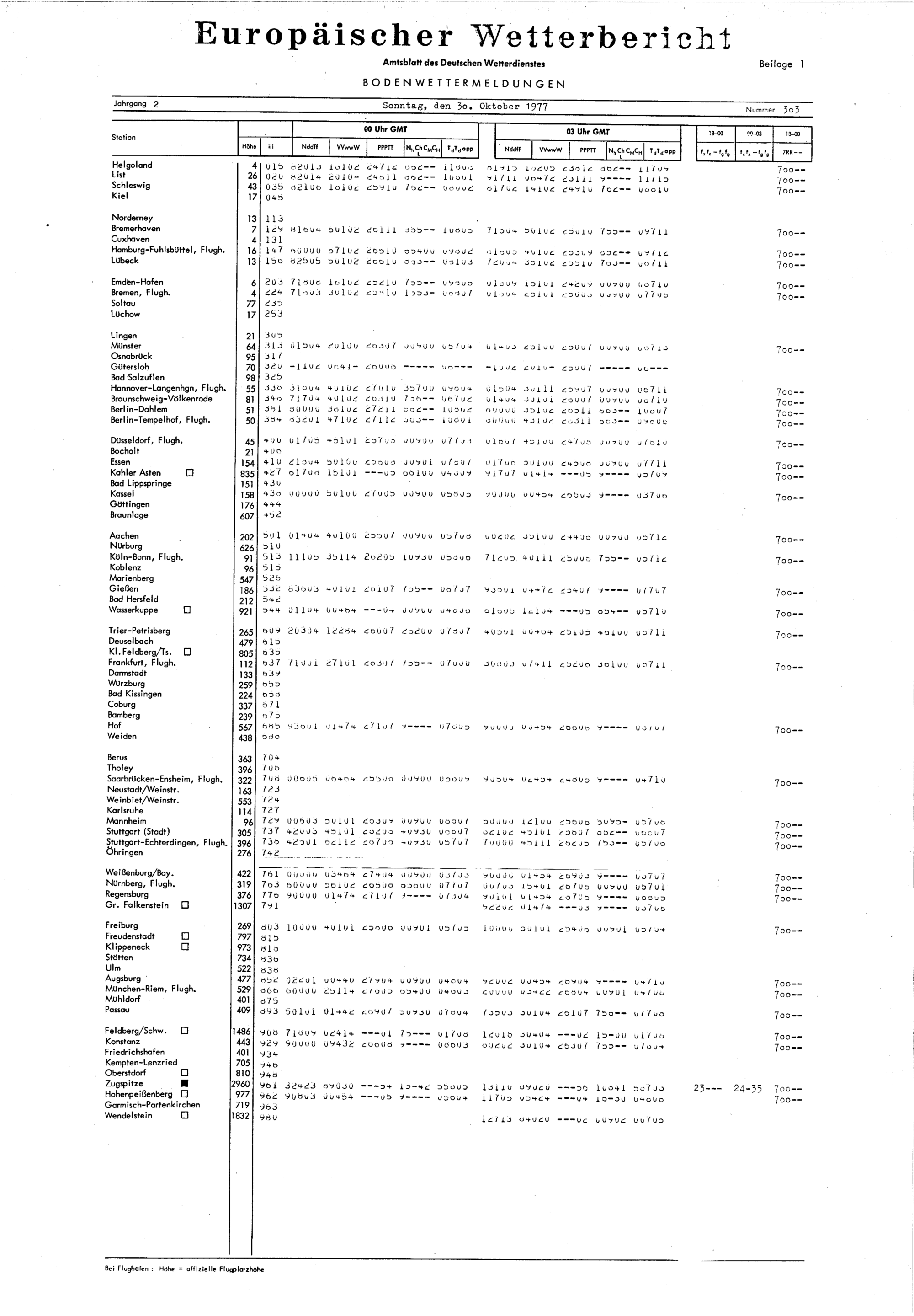Europäischer Wetterbericht. Beilage 1, Bodenwettermeldungen. 1976-1994