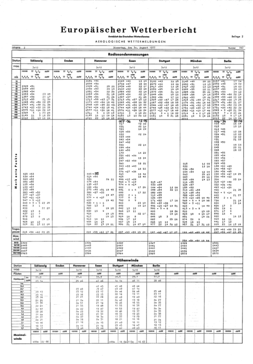 Europäischer Wetterbericht. Beilage 1, Bodenwettermeldungen. 1976-1994
