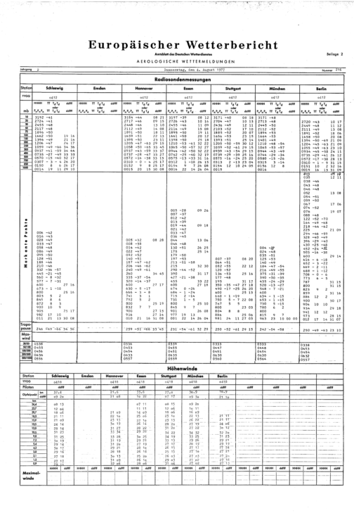 Europäischer Wetterbericht. Beilage 1, Bodenwettermeldungen. 1976-1994