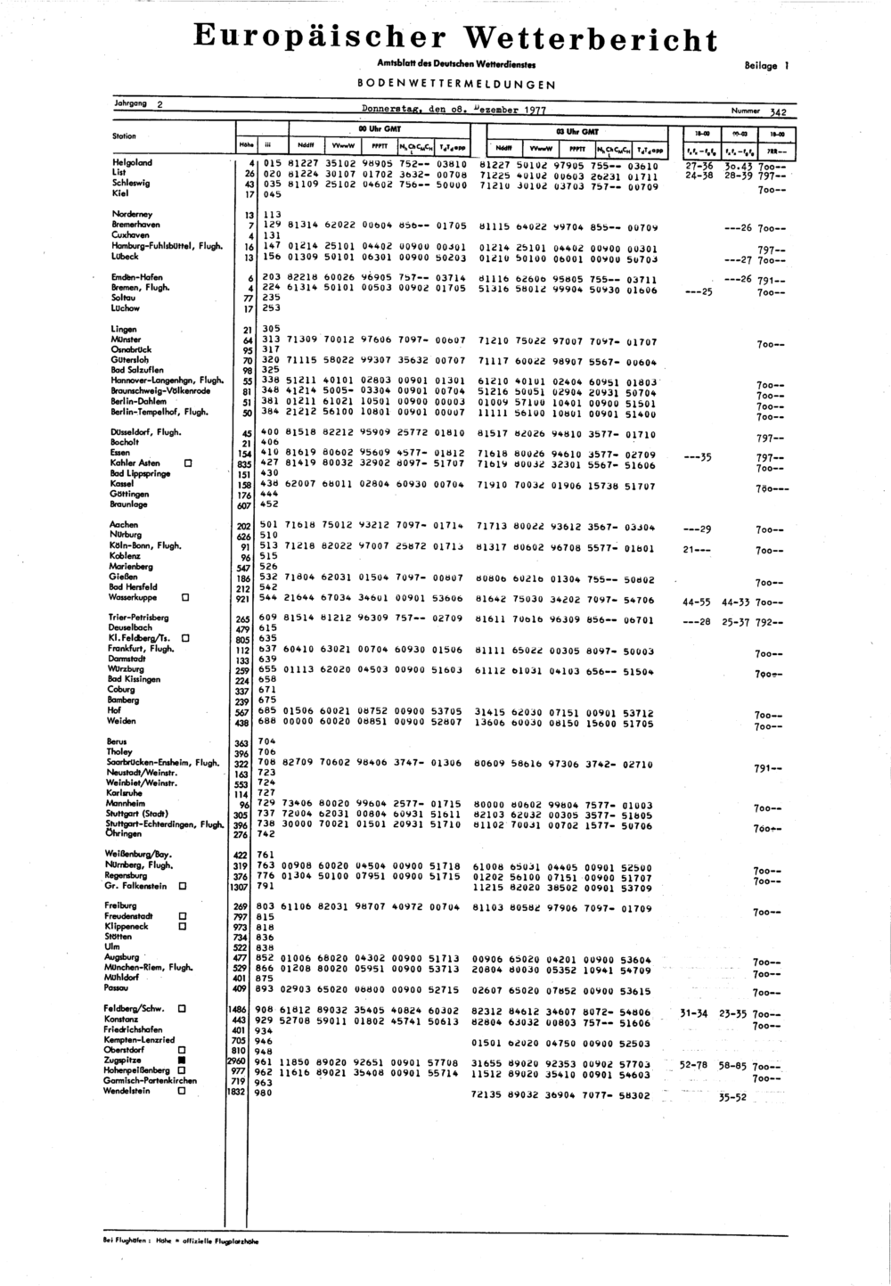 Europäischer Wetterbericht. Beilage 1, Bodenwettermeldungen. 1976-1994